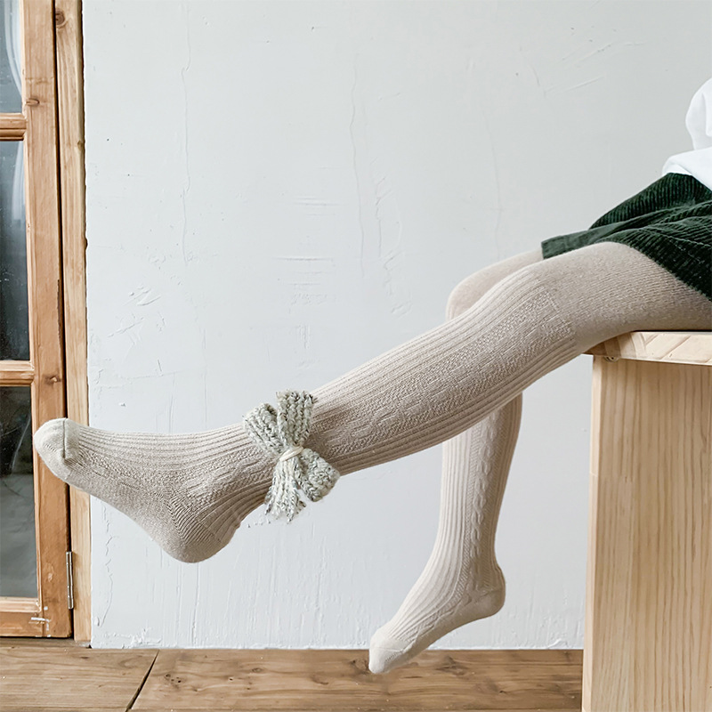 女宝宝连裤袜春季新女童毛线蝴蝶结打底裤儿童婴幼儿外穿袜