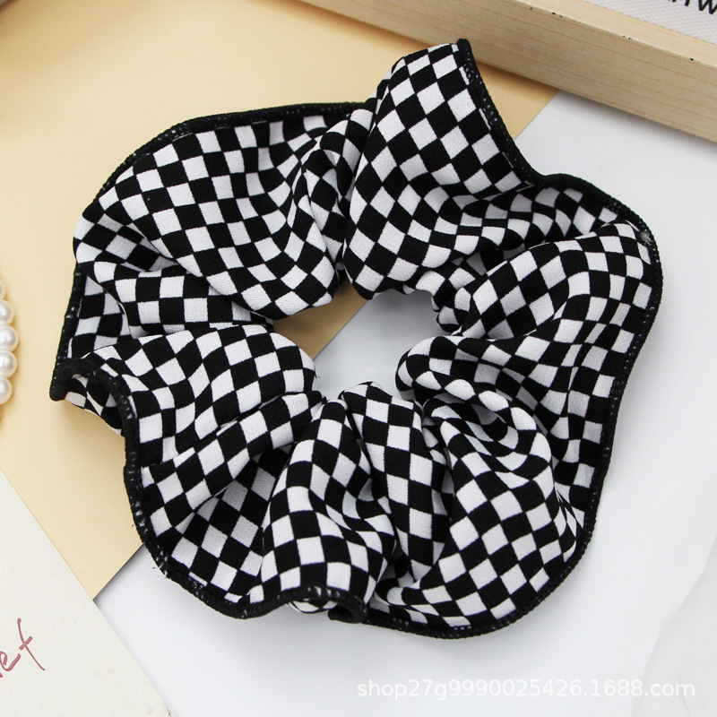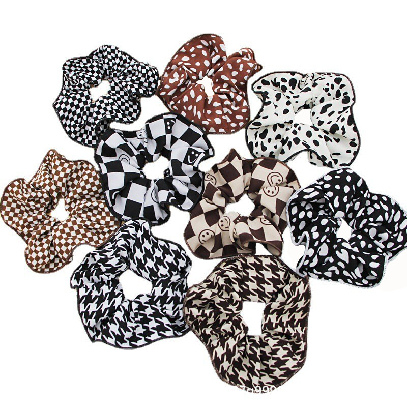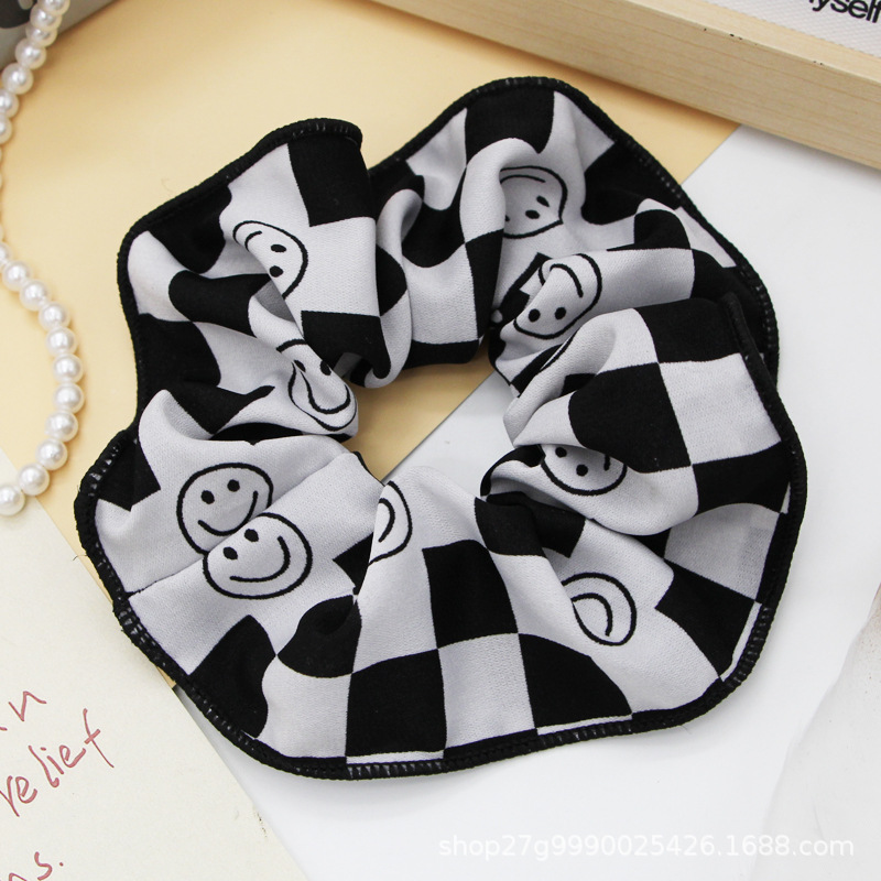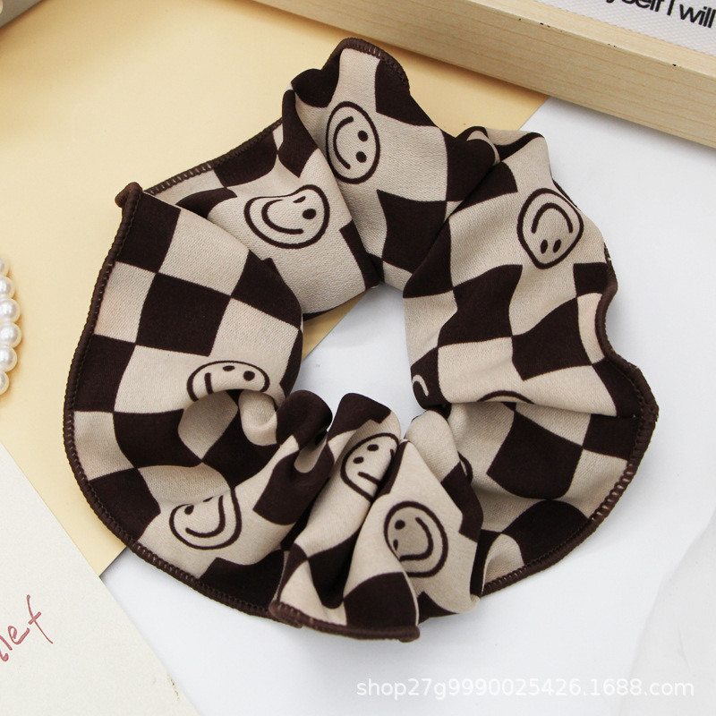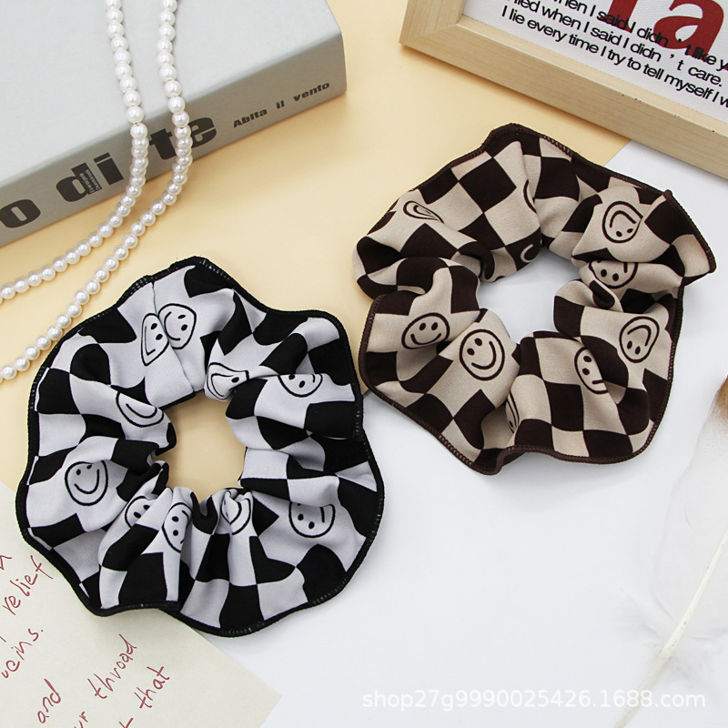 新款千鸟格棋盘格豹纹笑脸大肠发圈时尚发饰女扎发发绳头绳
