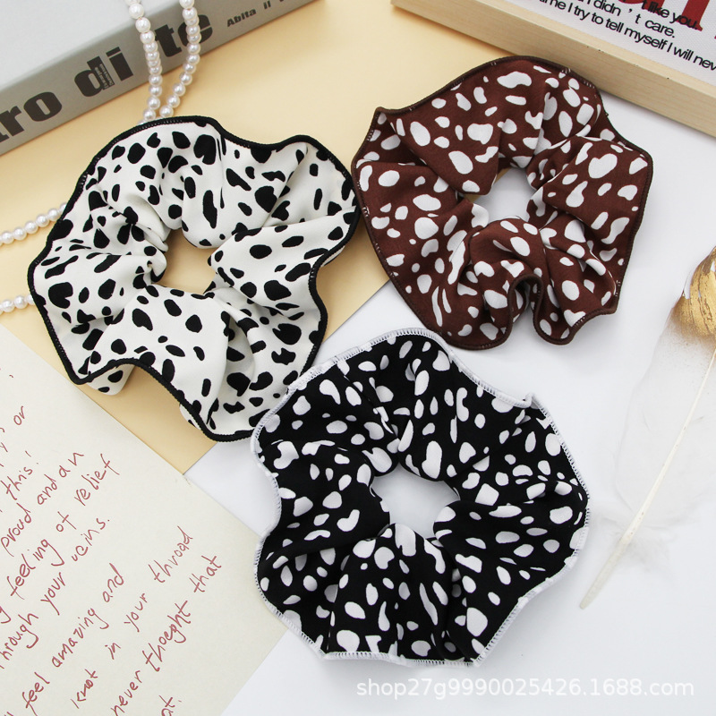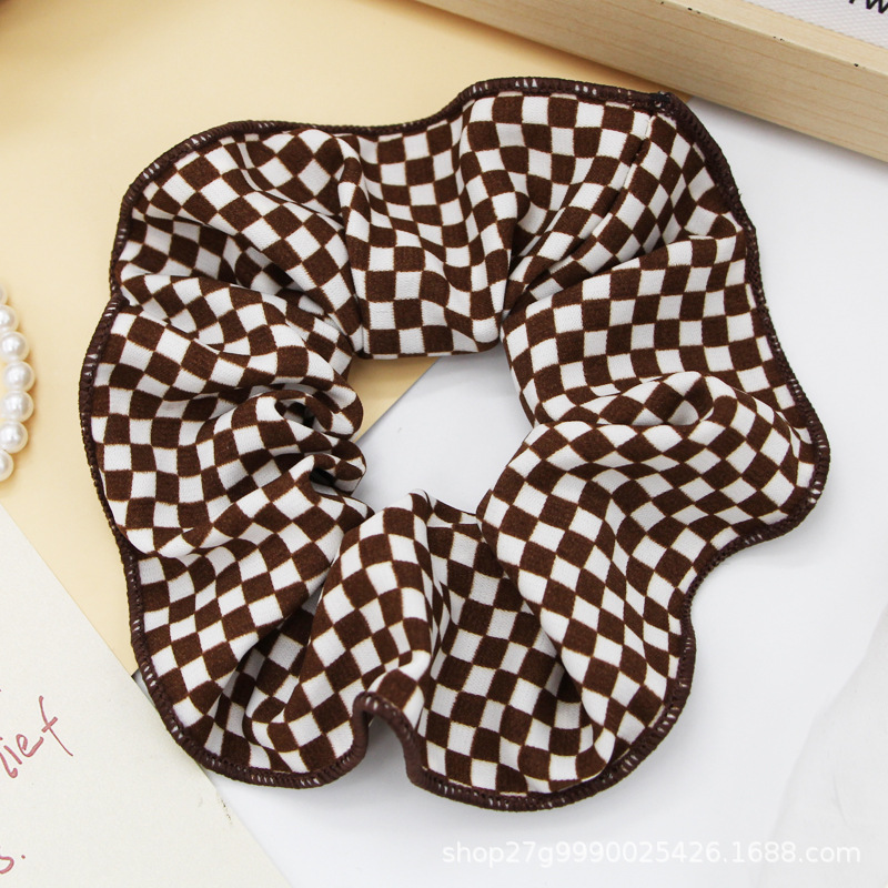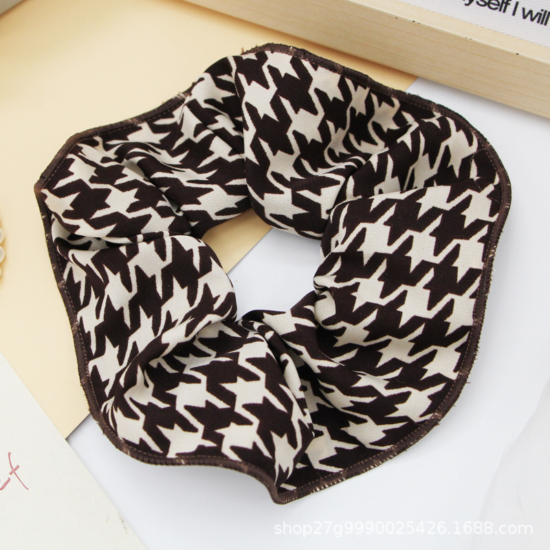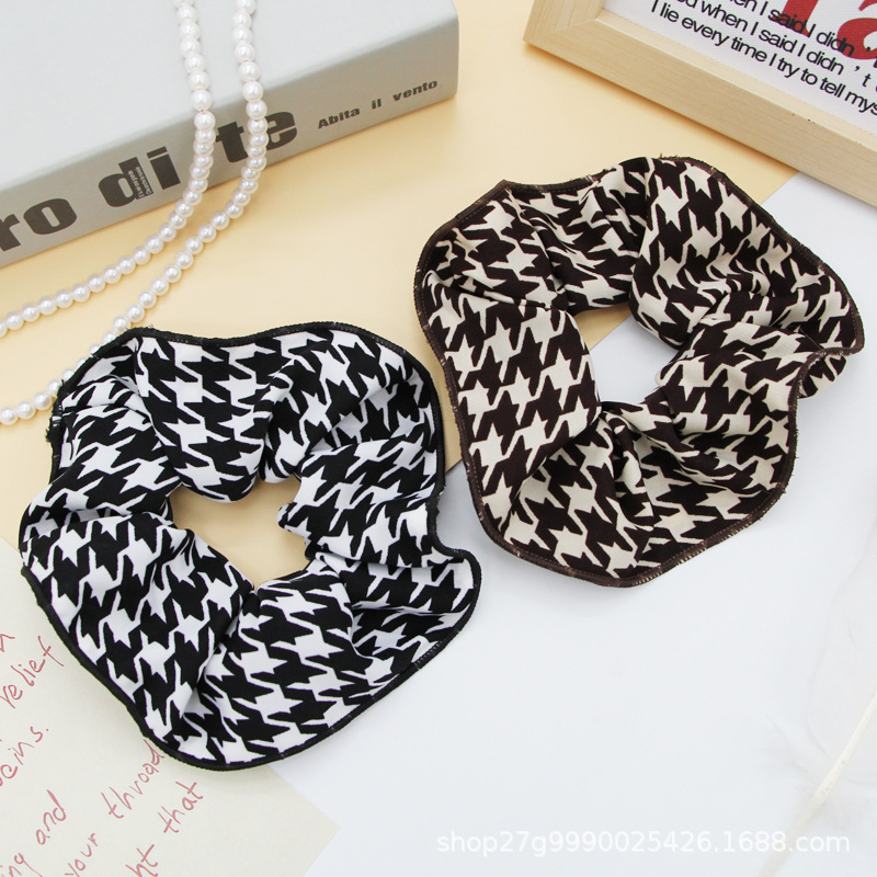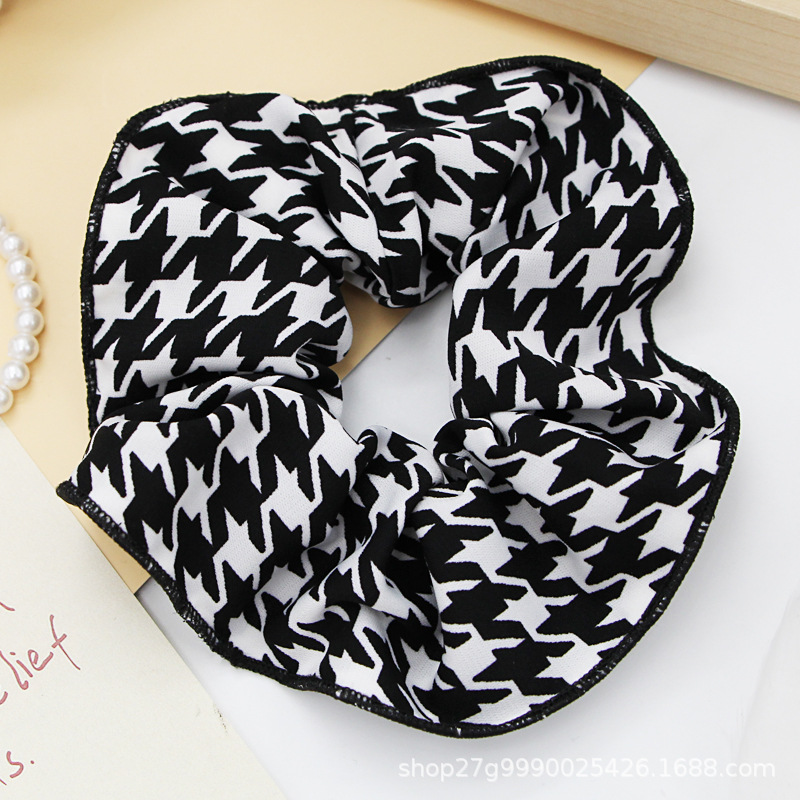 新款千鸟格棋盘格豹纹笑脸大肠发圈时尚发饰女扎发发绳头绳