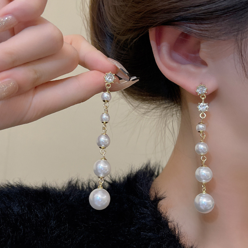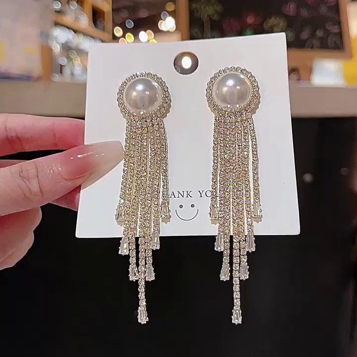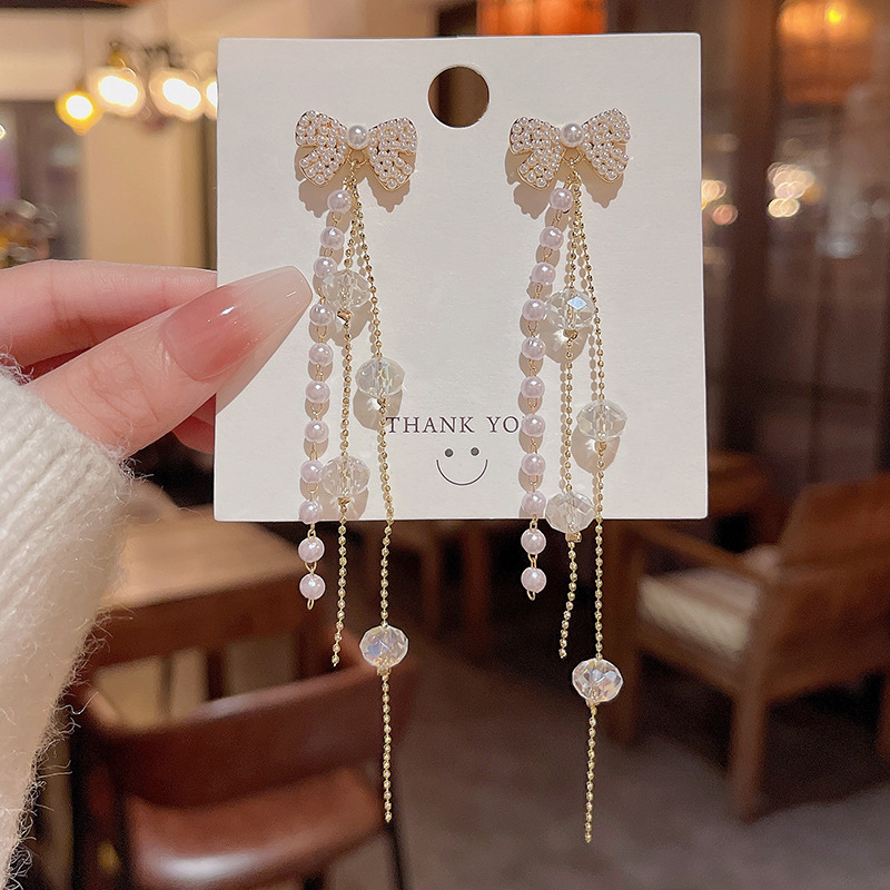 S925银针森系长款流苏花朵耳环女小众精致锆石蝴蝶结耳钉耳饰批发