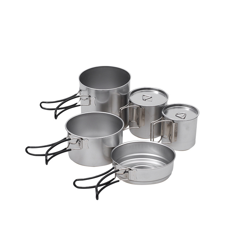 套锅户外野炊露营便携超轻套锅五件套不锈钢套锅