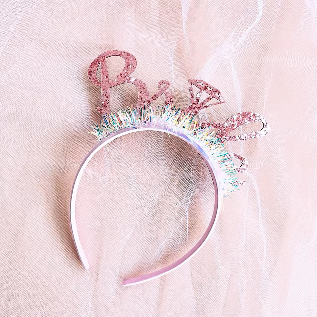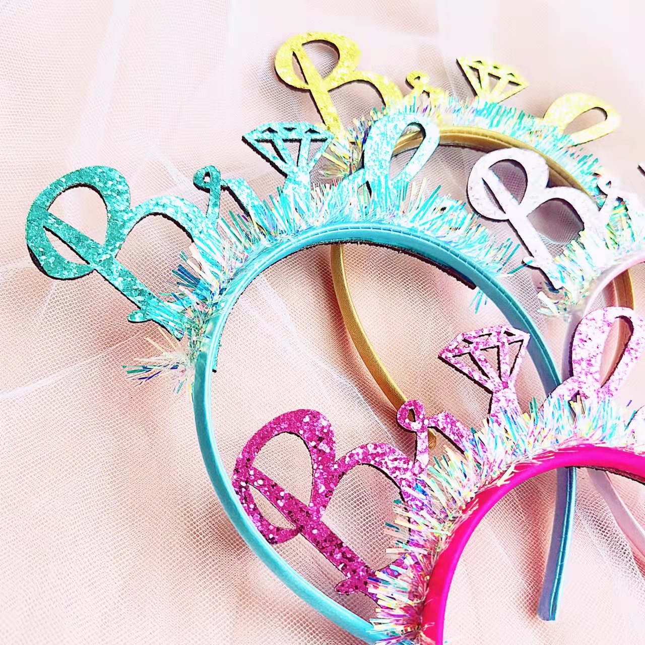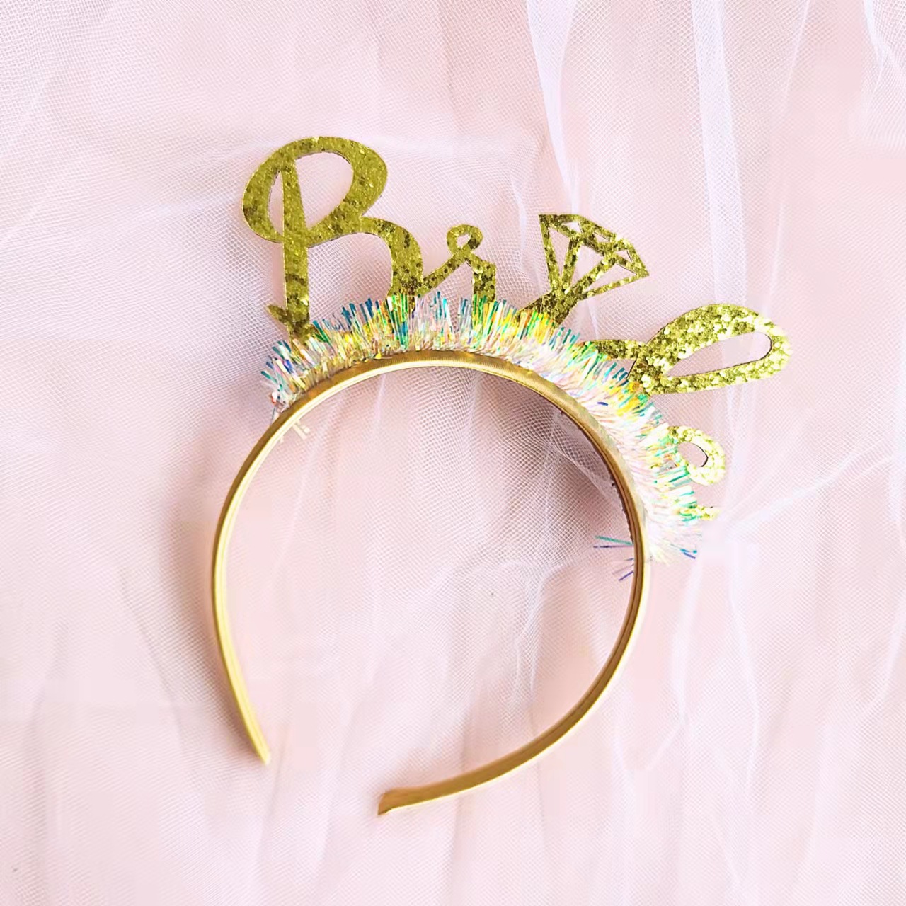 跨境多色新娘发箍头饰镭射英文字母婚礼装饰亮片发箍派对装饰用品