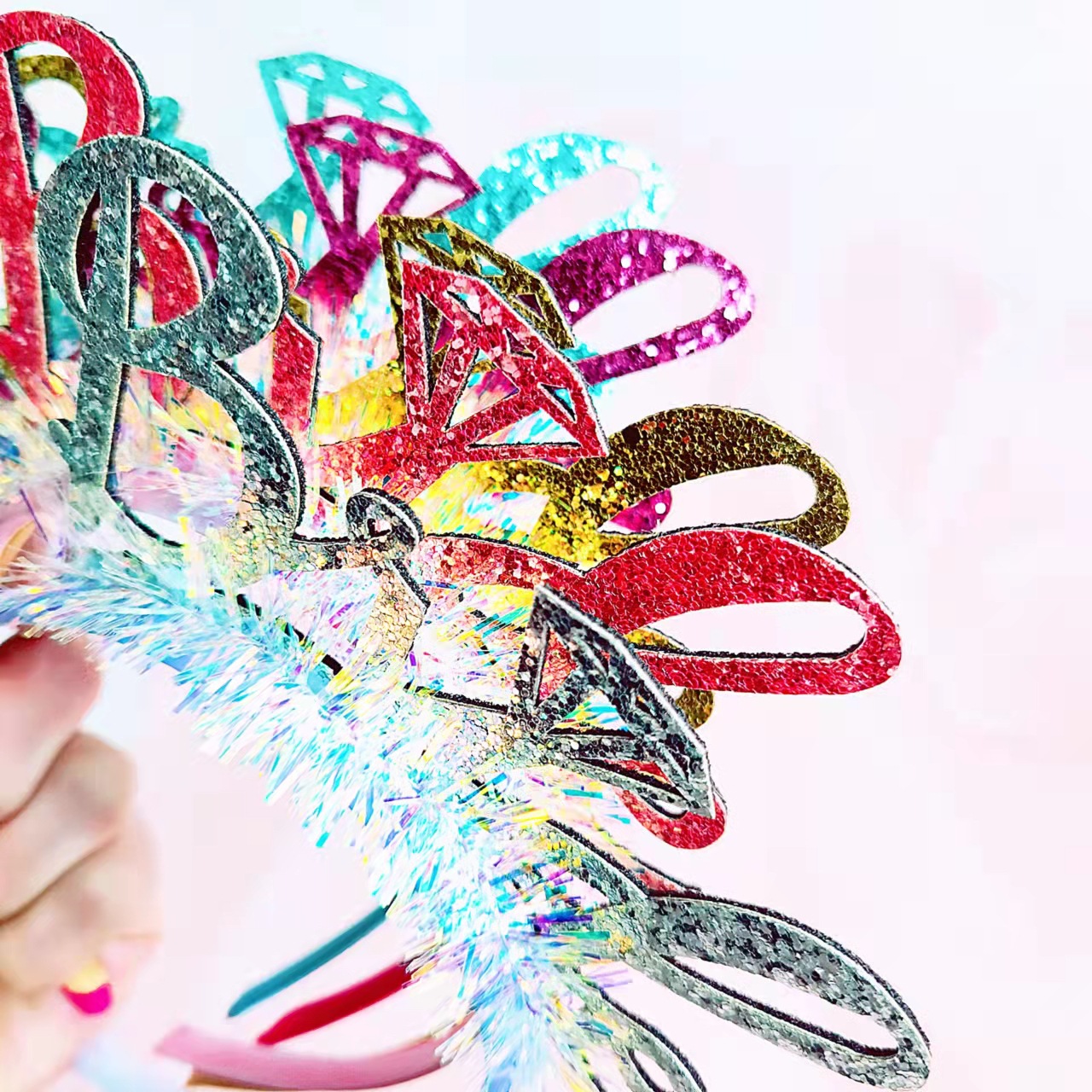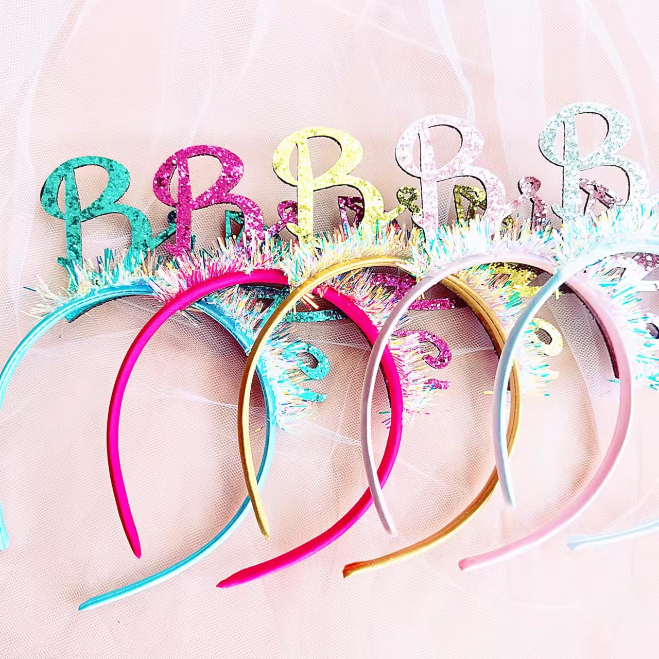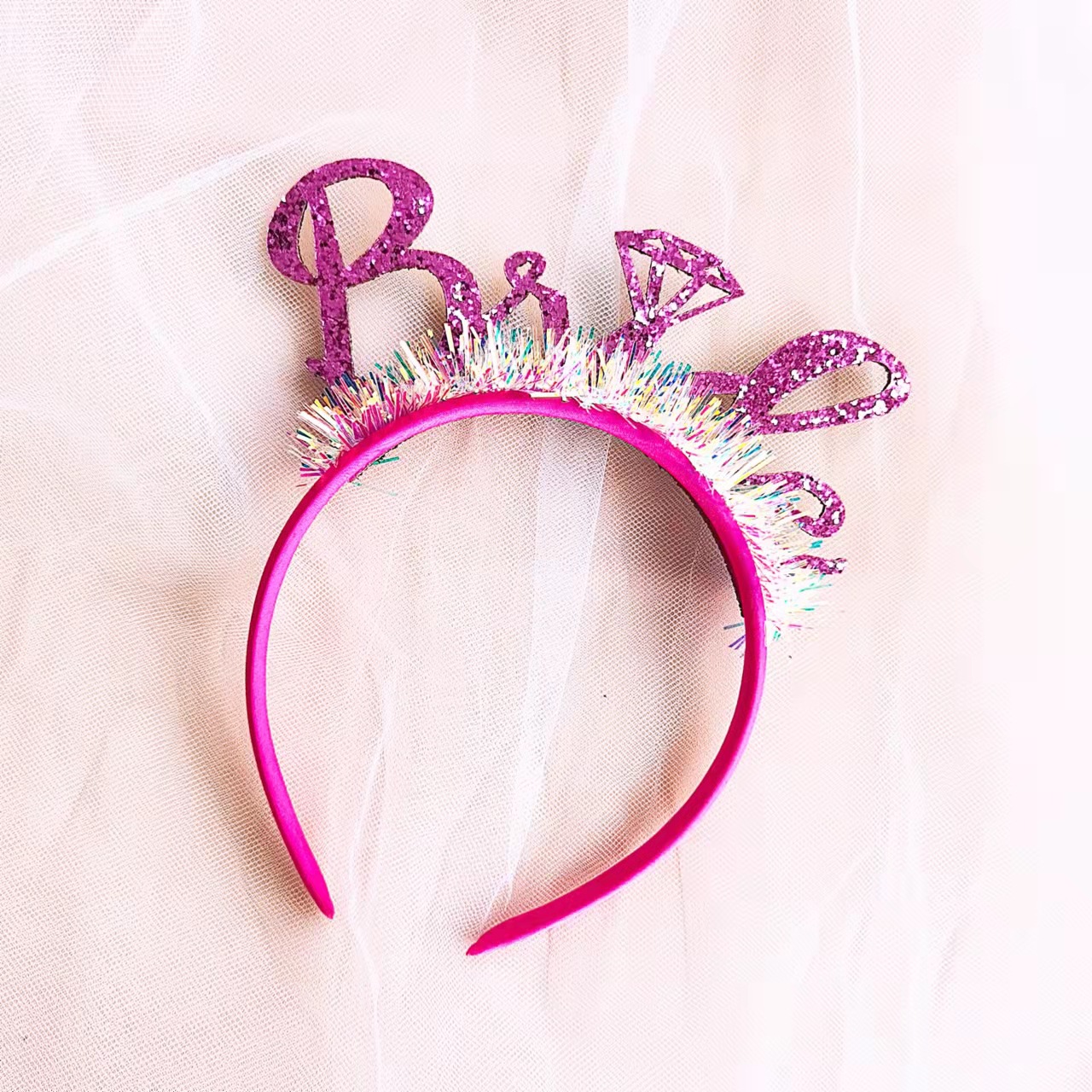 跨境多色新娘发箍头饰镭射英文字母婚礼装饰亮片发箍派对装饰用品