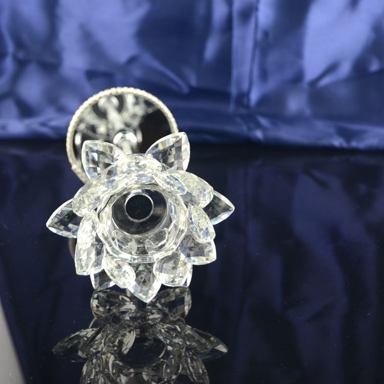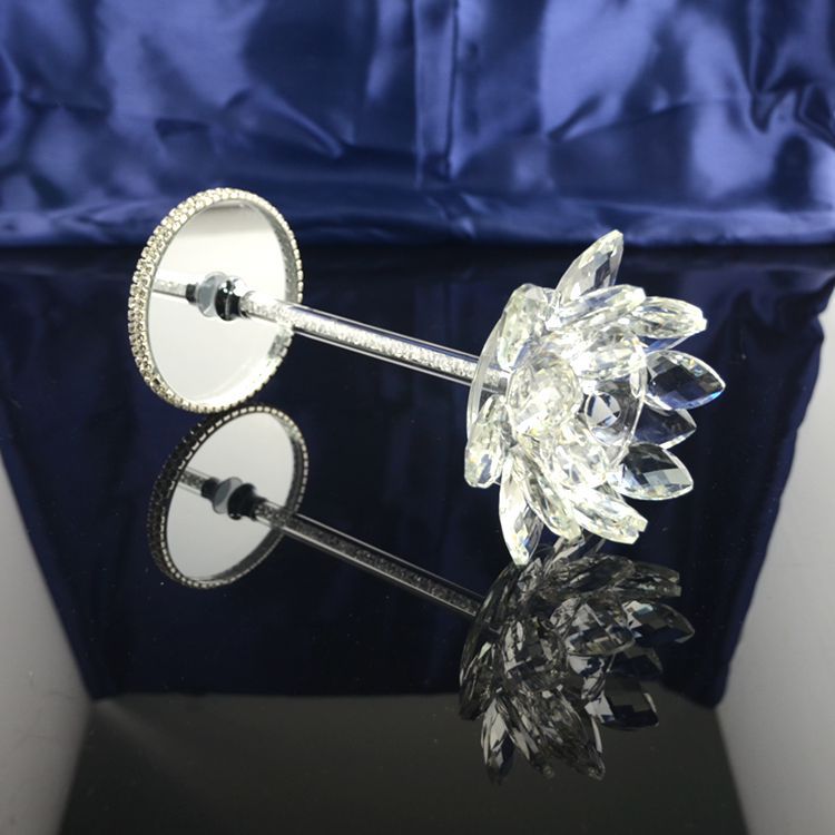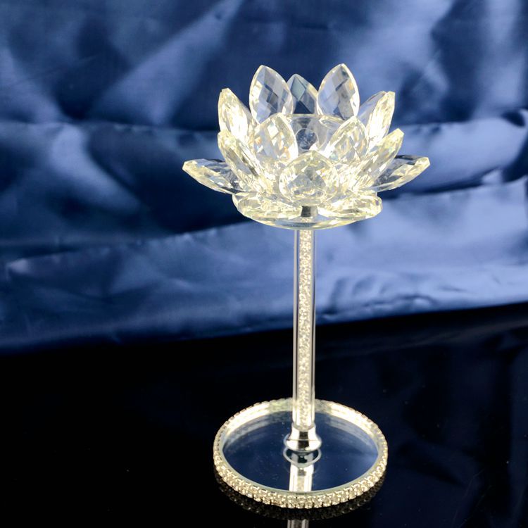 水晶莲花烛台 轻奢带钻高脚底座摆件 水晶蜡烛杯