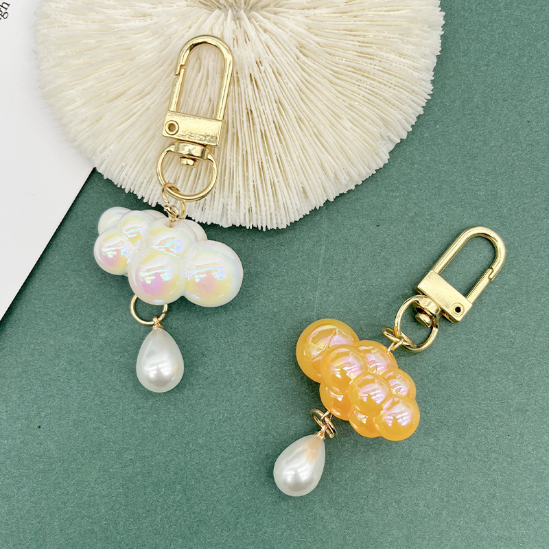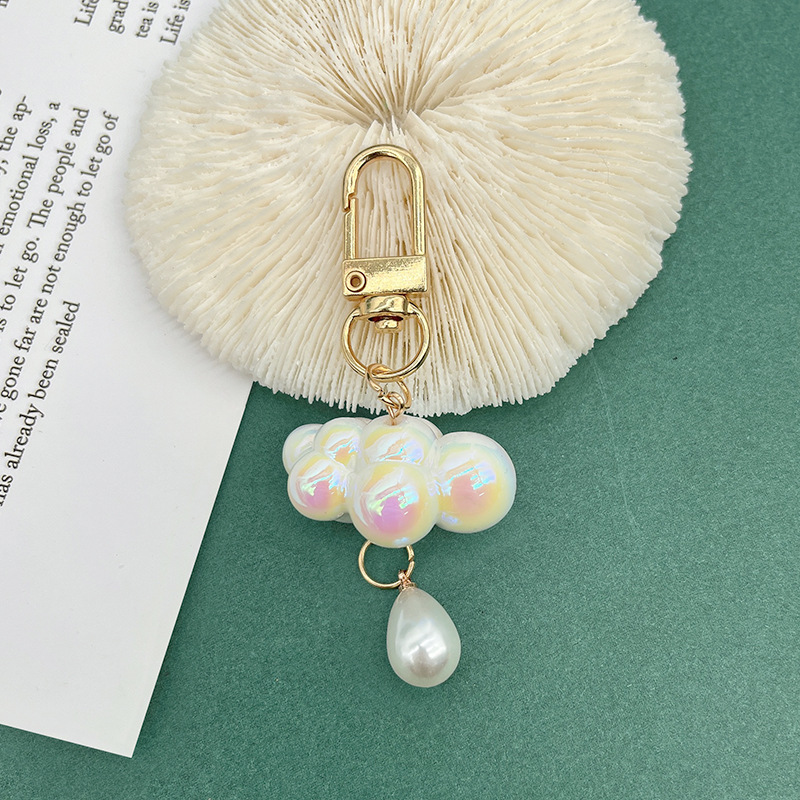 云朵汽车钥匙扣ins风ab彩水滴珍珠白云朵diy配件装饰手机包包挂件