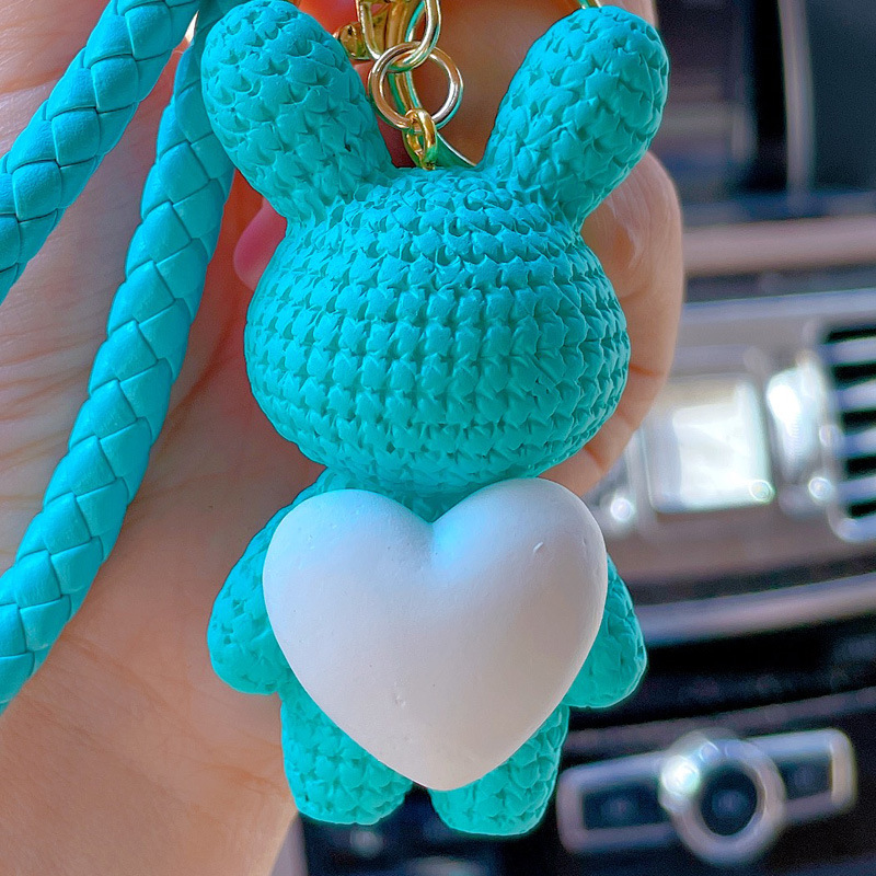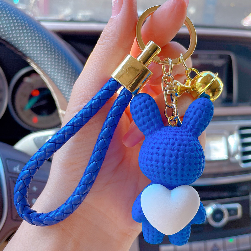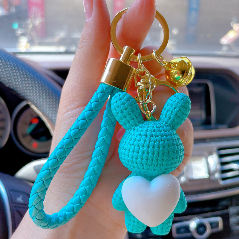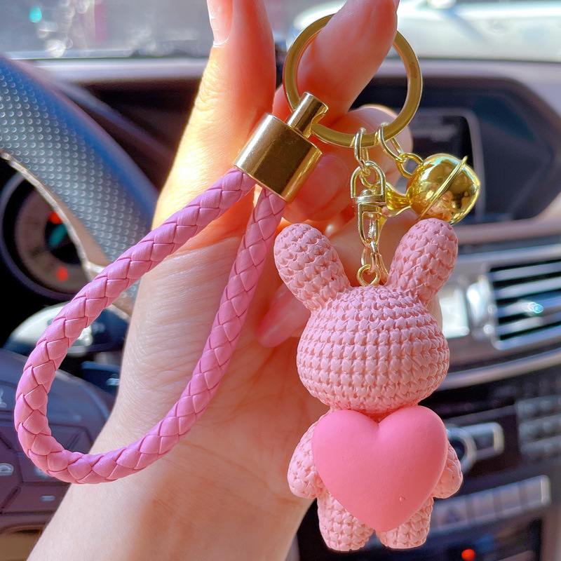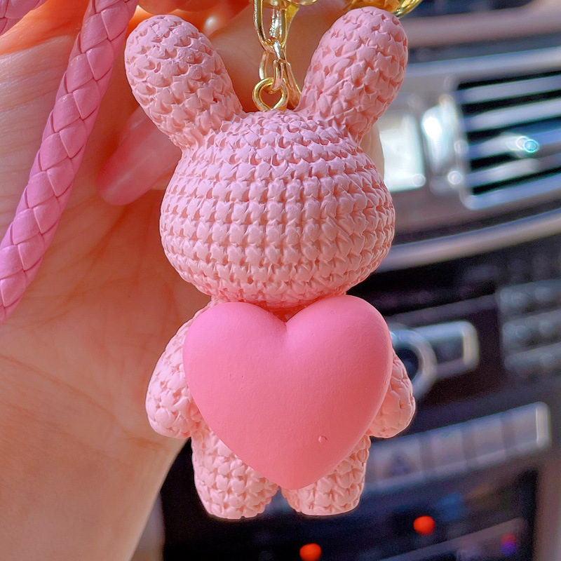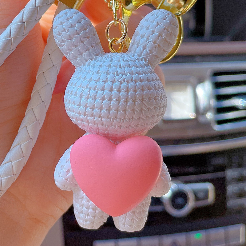 卡通抱爱心编织毛线兔钥匙扣可爱情侣挂件创意汽车钥匙链挂饰批发