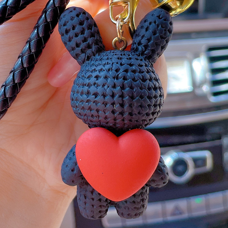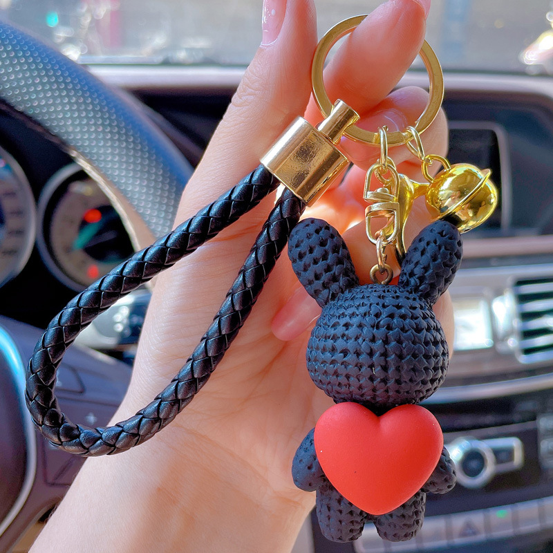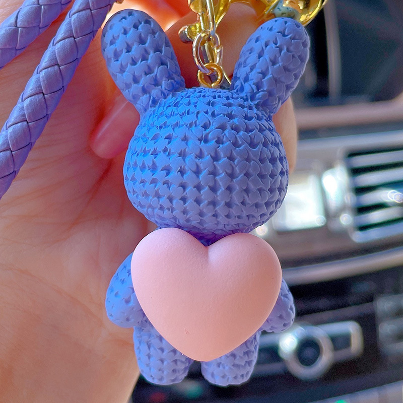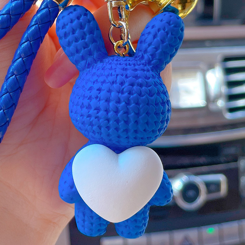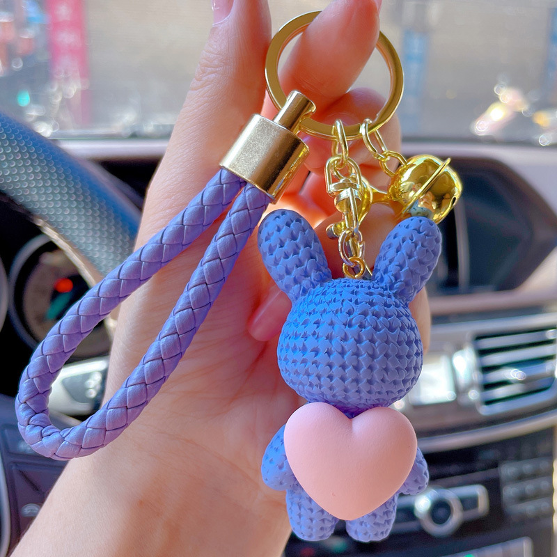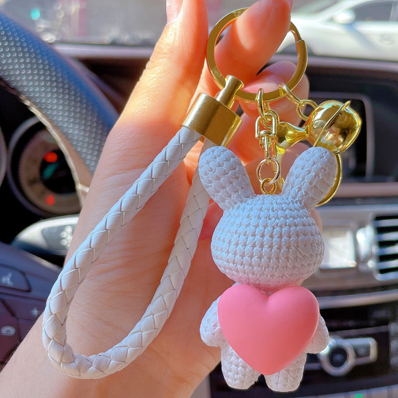 卡通抱爱心编织毛线兔钥匙扣可爱情侣挂件创意汽车钥匙链挂饰批发