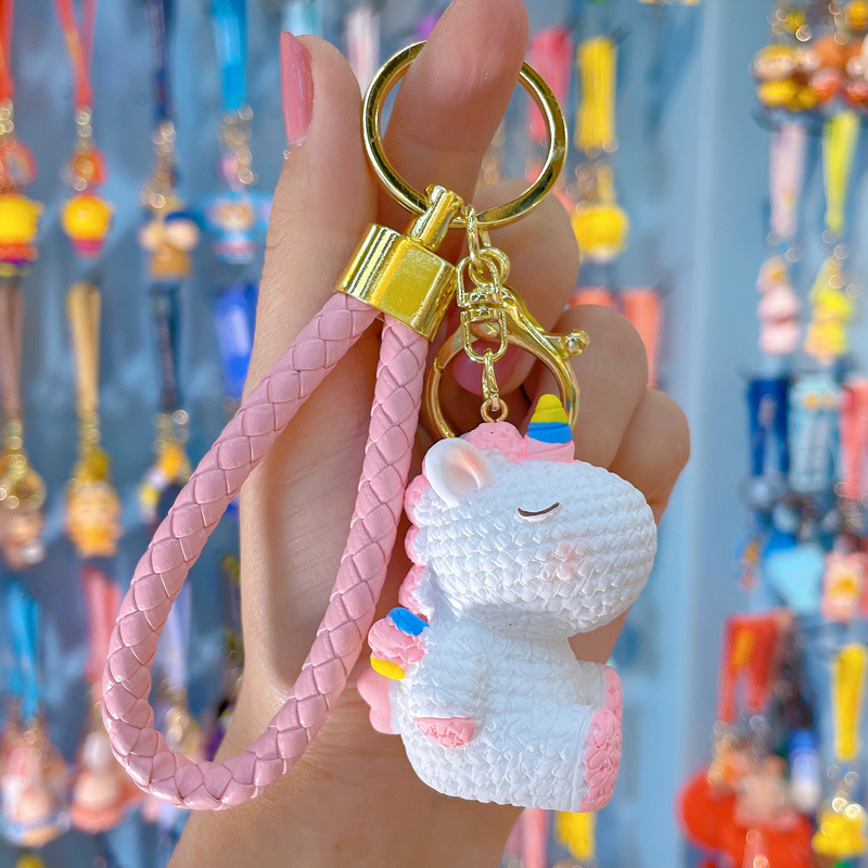 龙创卡通树脂独角兽钥匙扣女可爱创意精致汽车钥匙链包包挂件批发