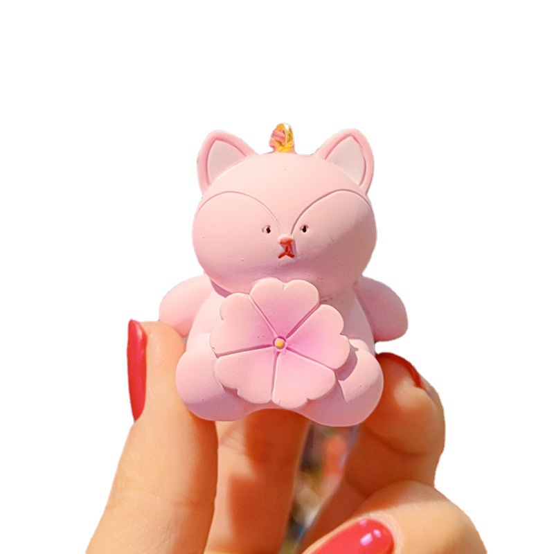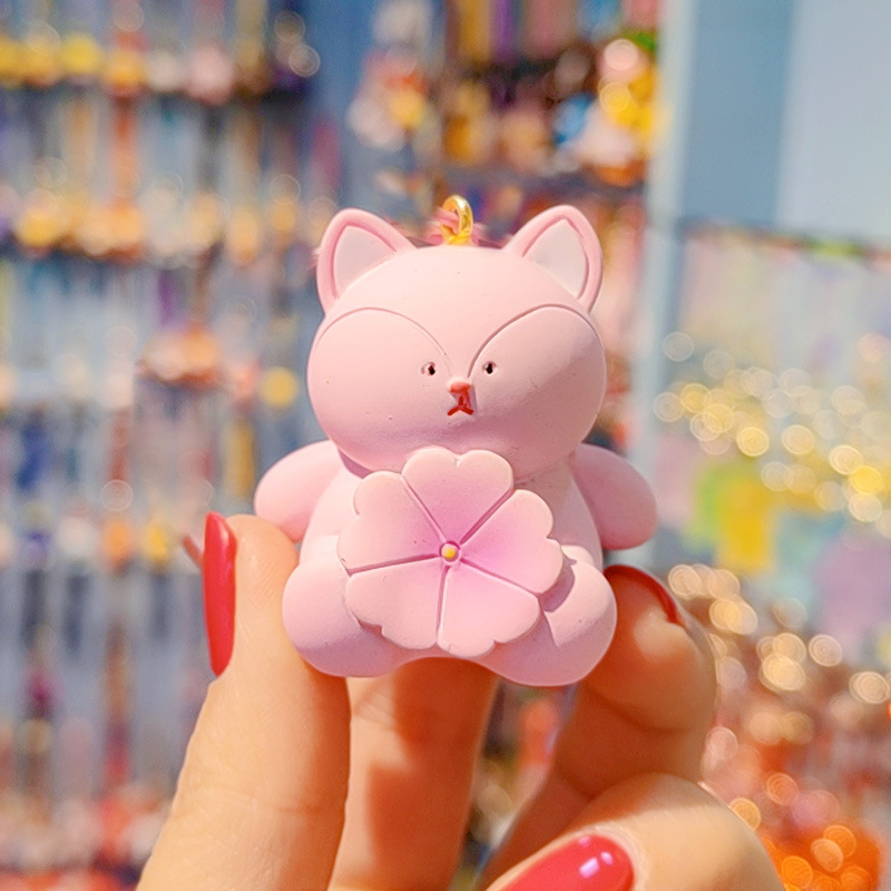 新款卡通抱花小动物钥匙扣女可爱时尚精致树脂公仔钥匙链包挂摆件