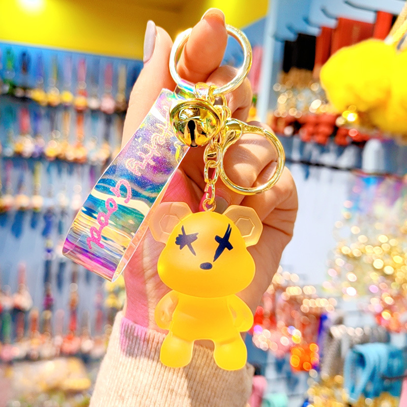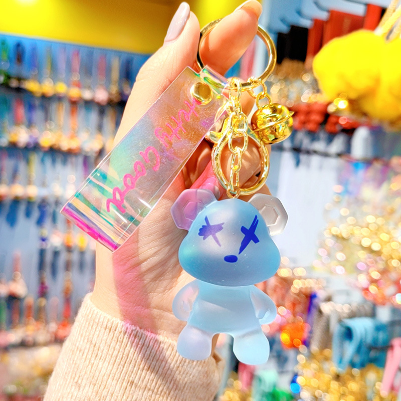 卡通透明树脂水晶涂鸦熊钥匙扣女可爱时尚精致树脂公仔钥匙链挂件