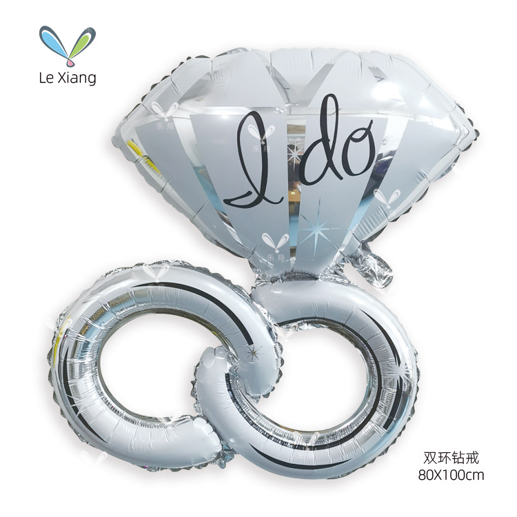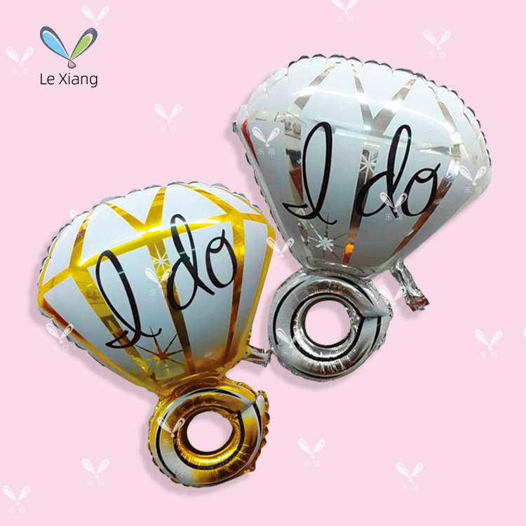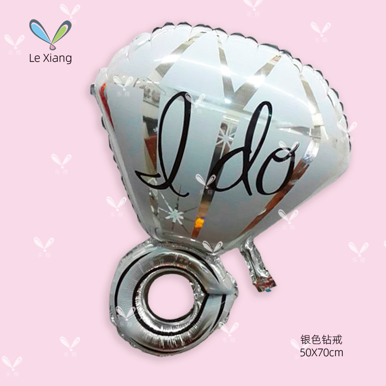 新款求婚双环镂空钻戒I DO铝膜气球 情人节惊喜婚庆装饰布置批发