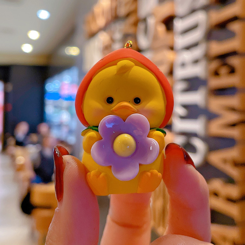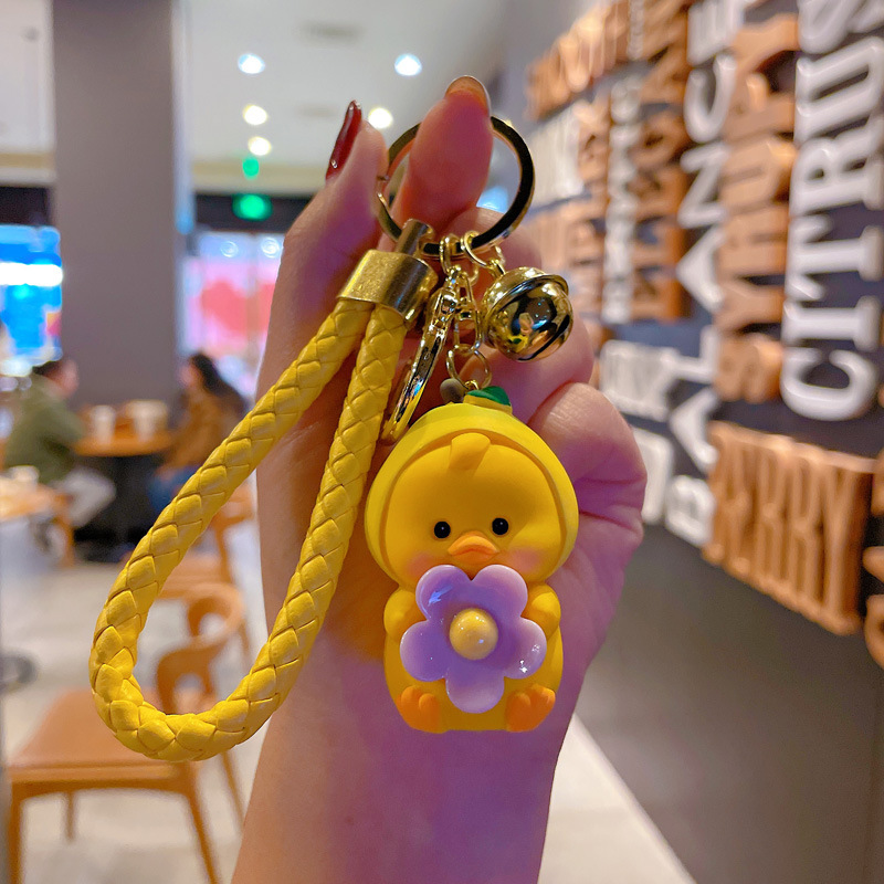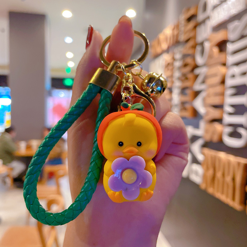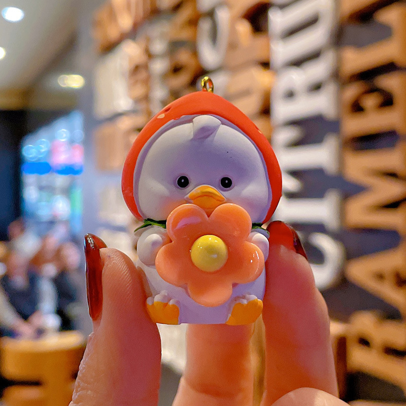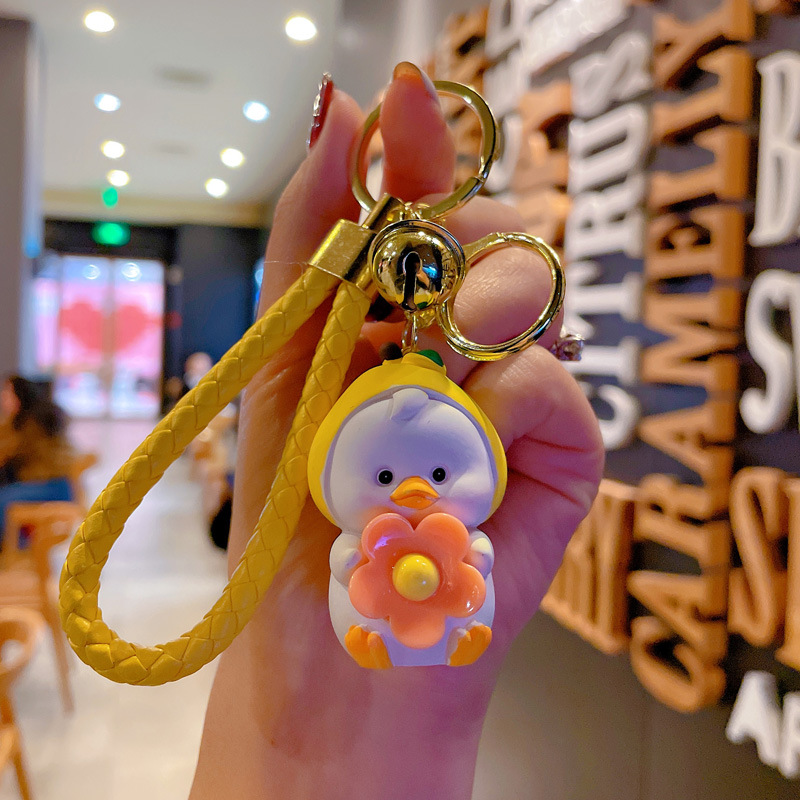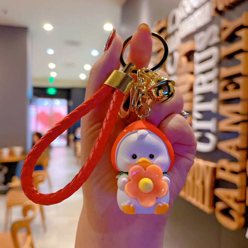 新款卡通笨笨小花水果鸭钥匙扣女可爱时尚树脂公仔钥匙链包挂摆件