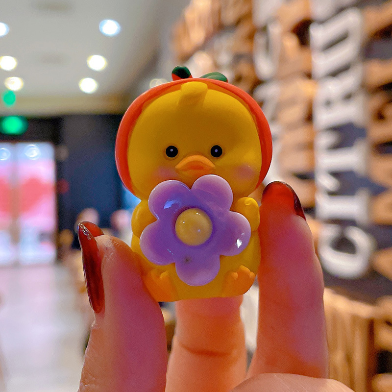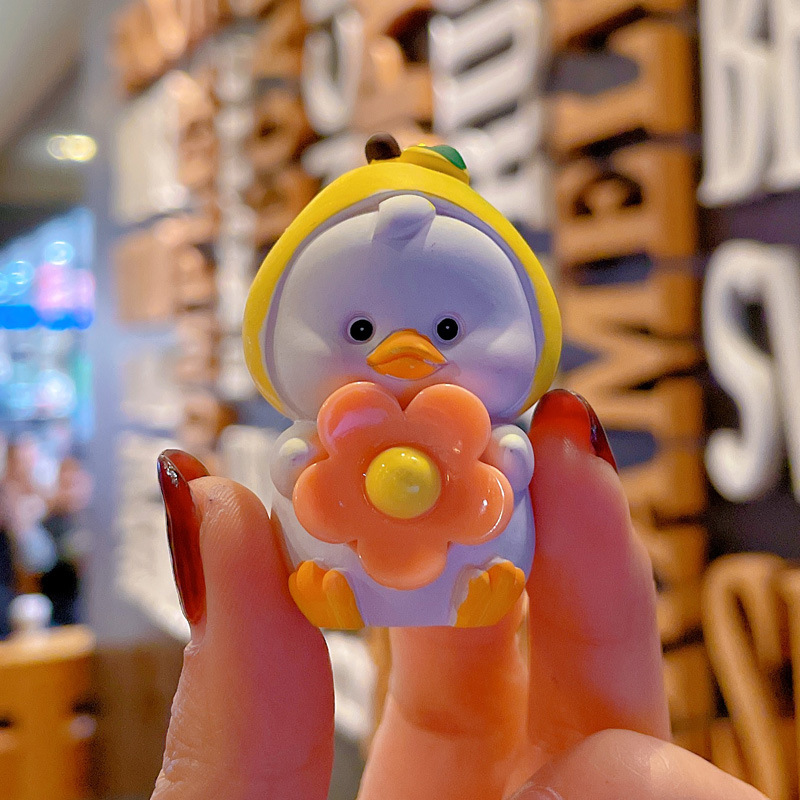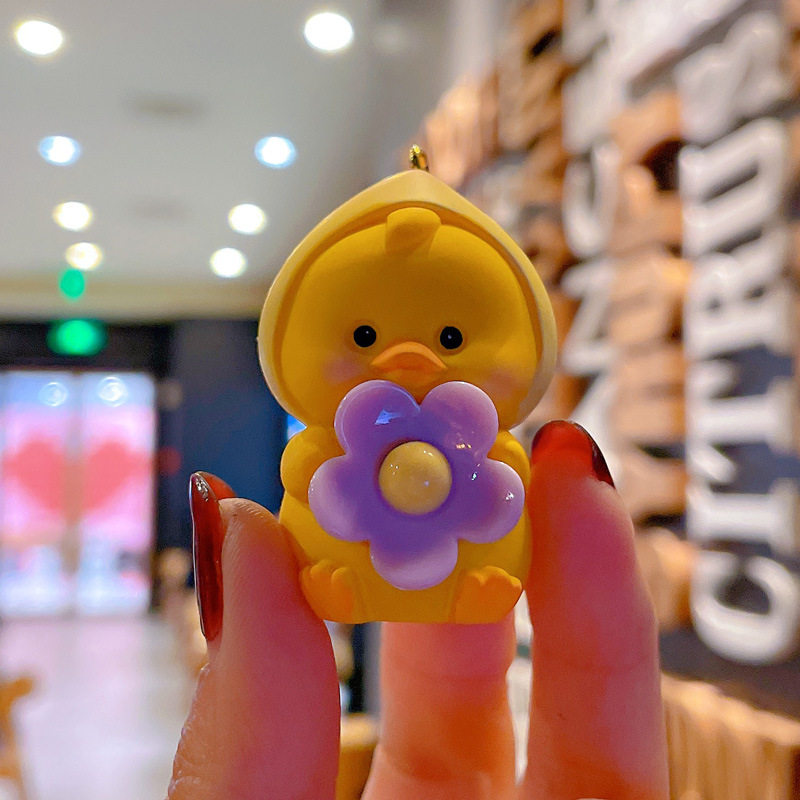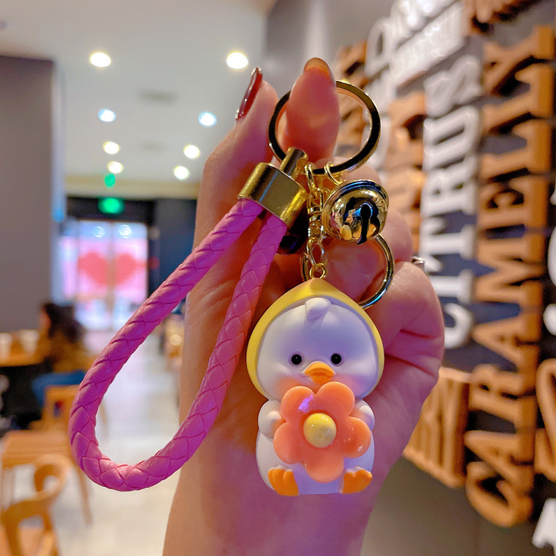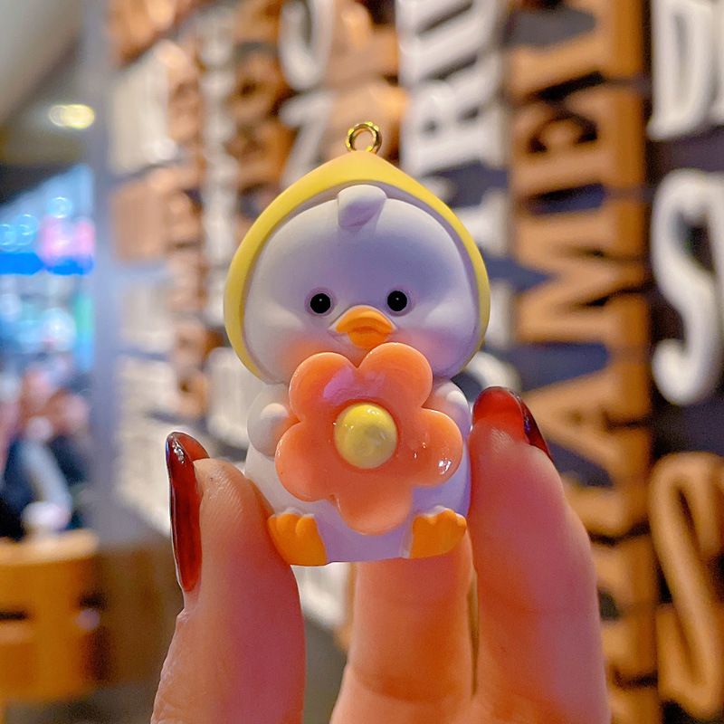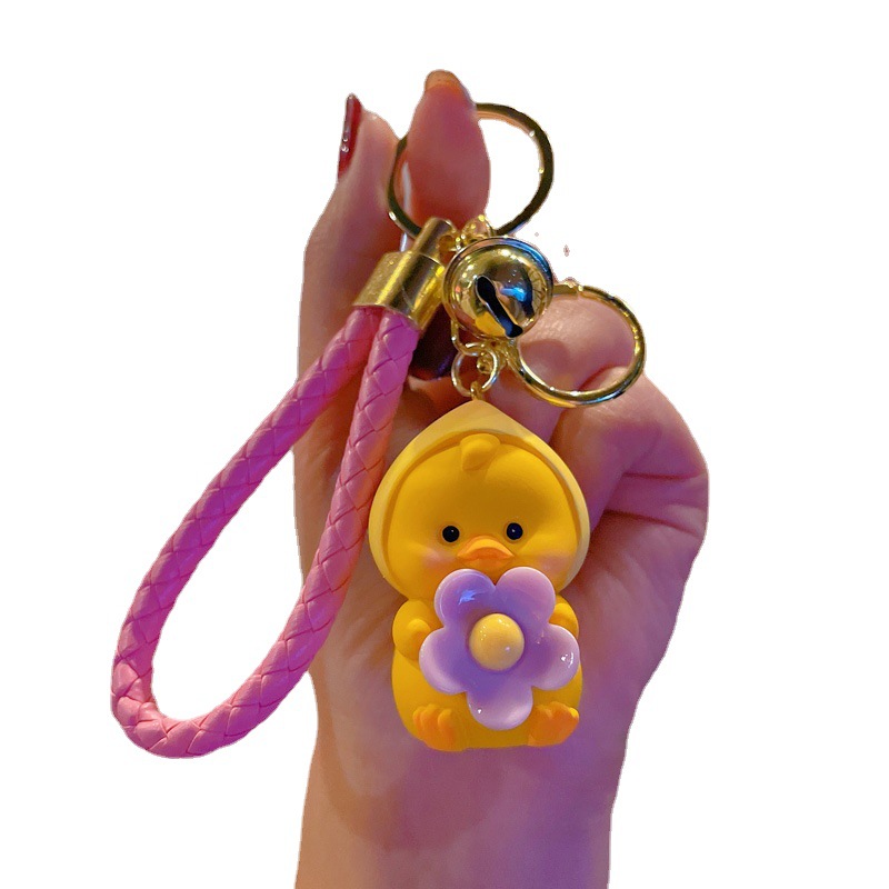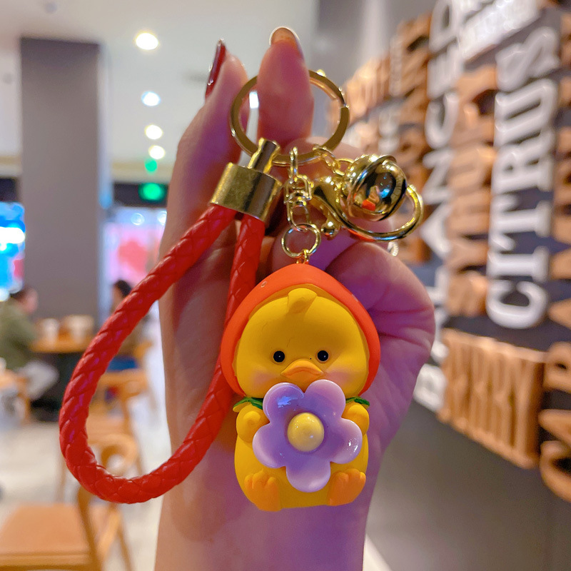 新款卡通笨笨小花水果鸭钥匙扣女可爱时尚树脂公仔钥匙链包挂摆件
