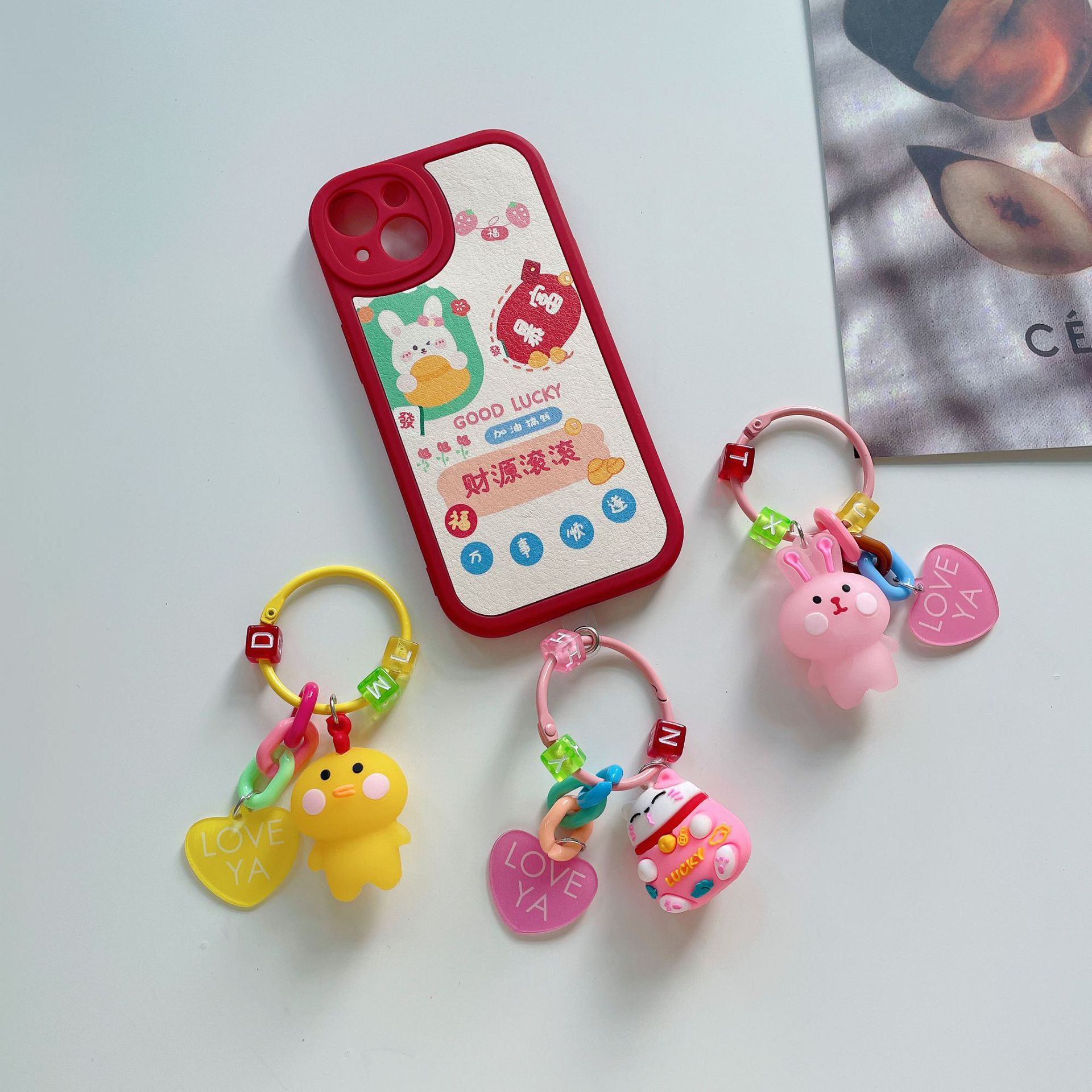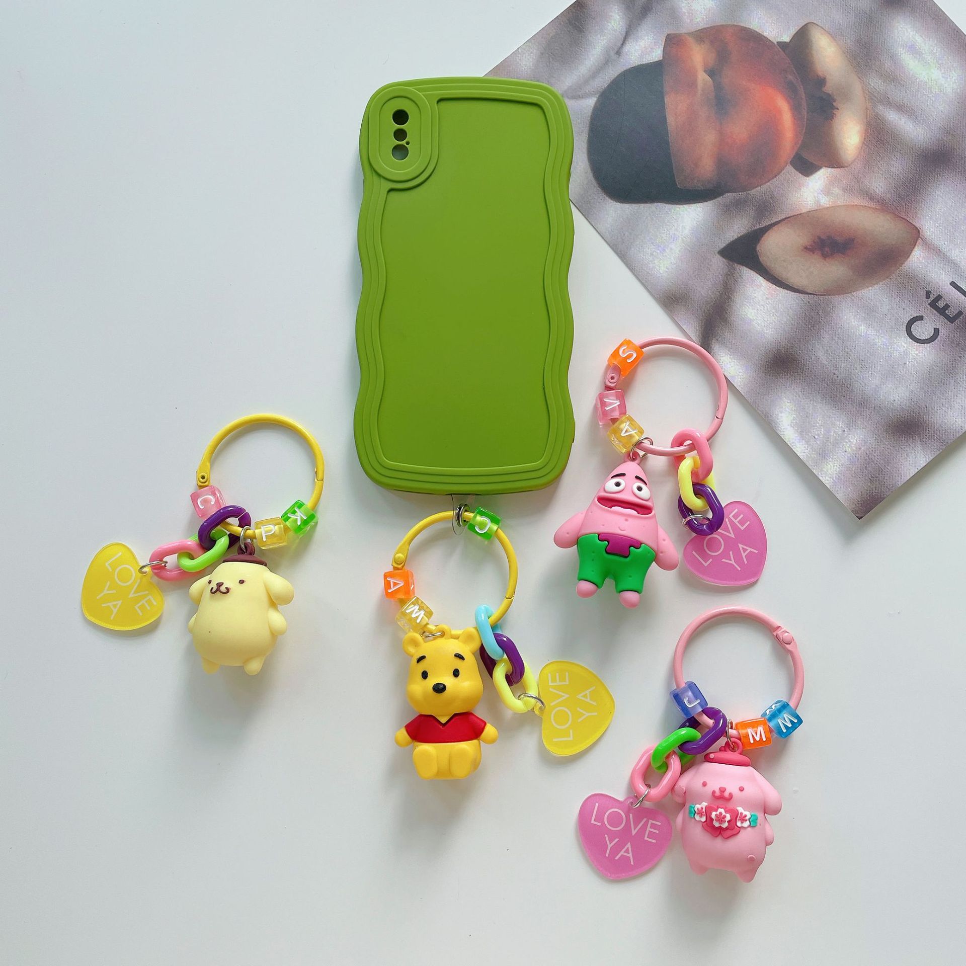 公仔糖果色手环挂件公仔软胶串珠手机壳挂饰彩爱心卡通手机挂绳