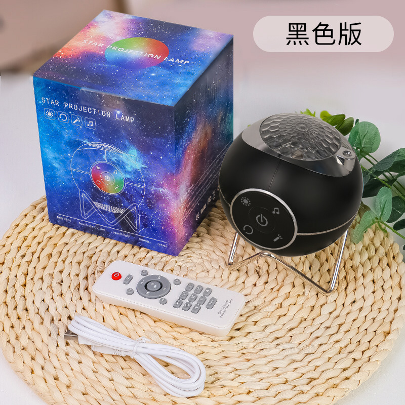 包装清单:星球激光投影灯一台,USB线一条,产品说明书一份,遥控器一个,铁+电镀支架一个