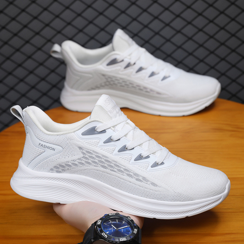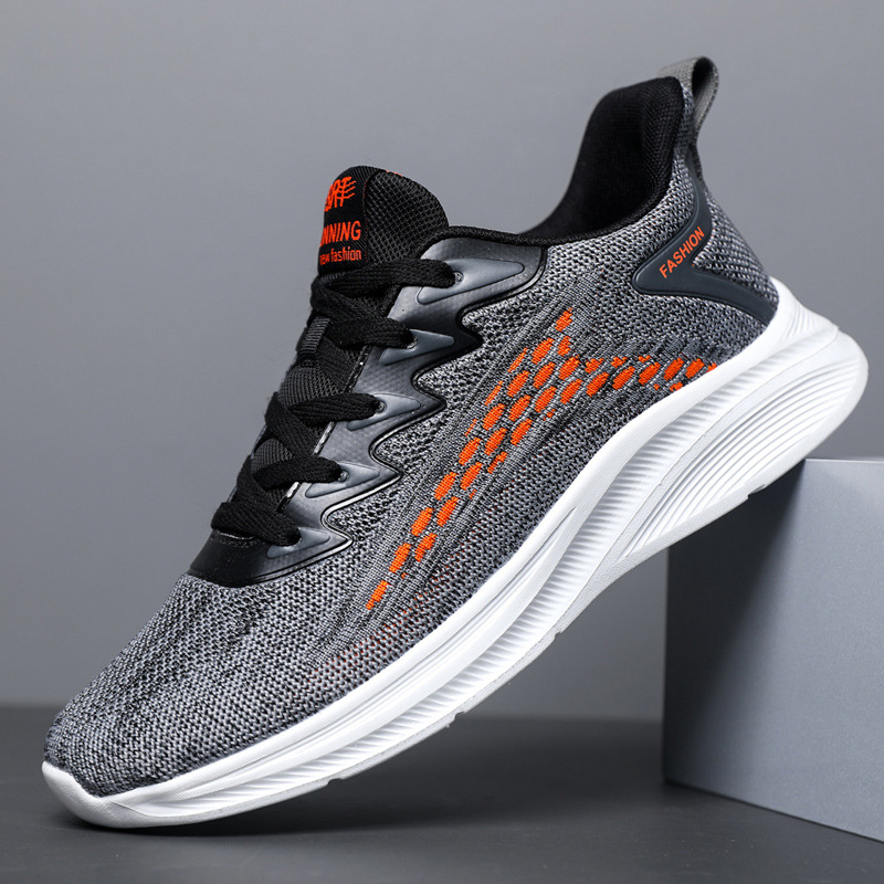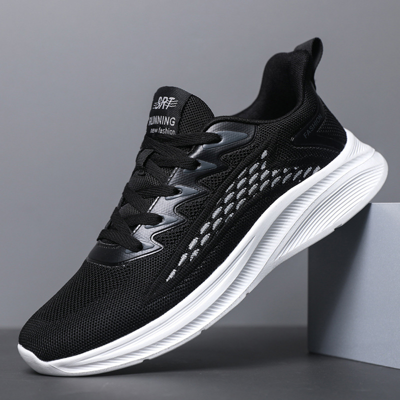 胶粘男鞋春季新款夏季透气网布鞋男飞织跑步鞋学生休闲运动鞋男款