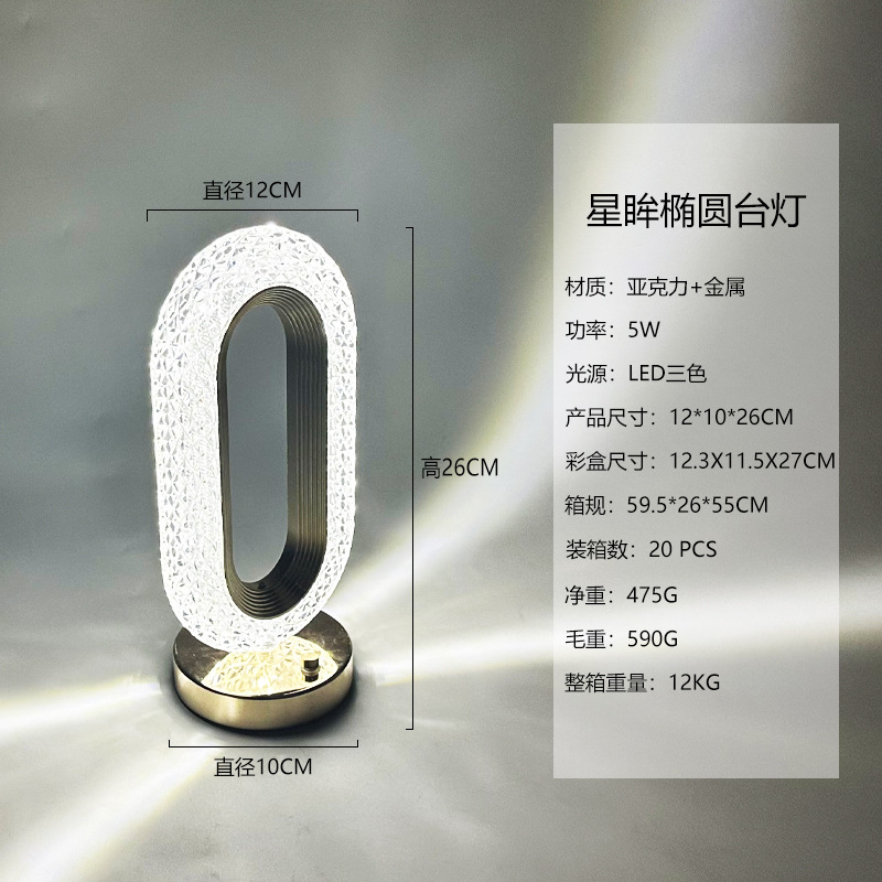 跨境LED星眸水晶孔雀翎台灯USB充电简约现代触摸卧室餐厅氛围灯