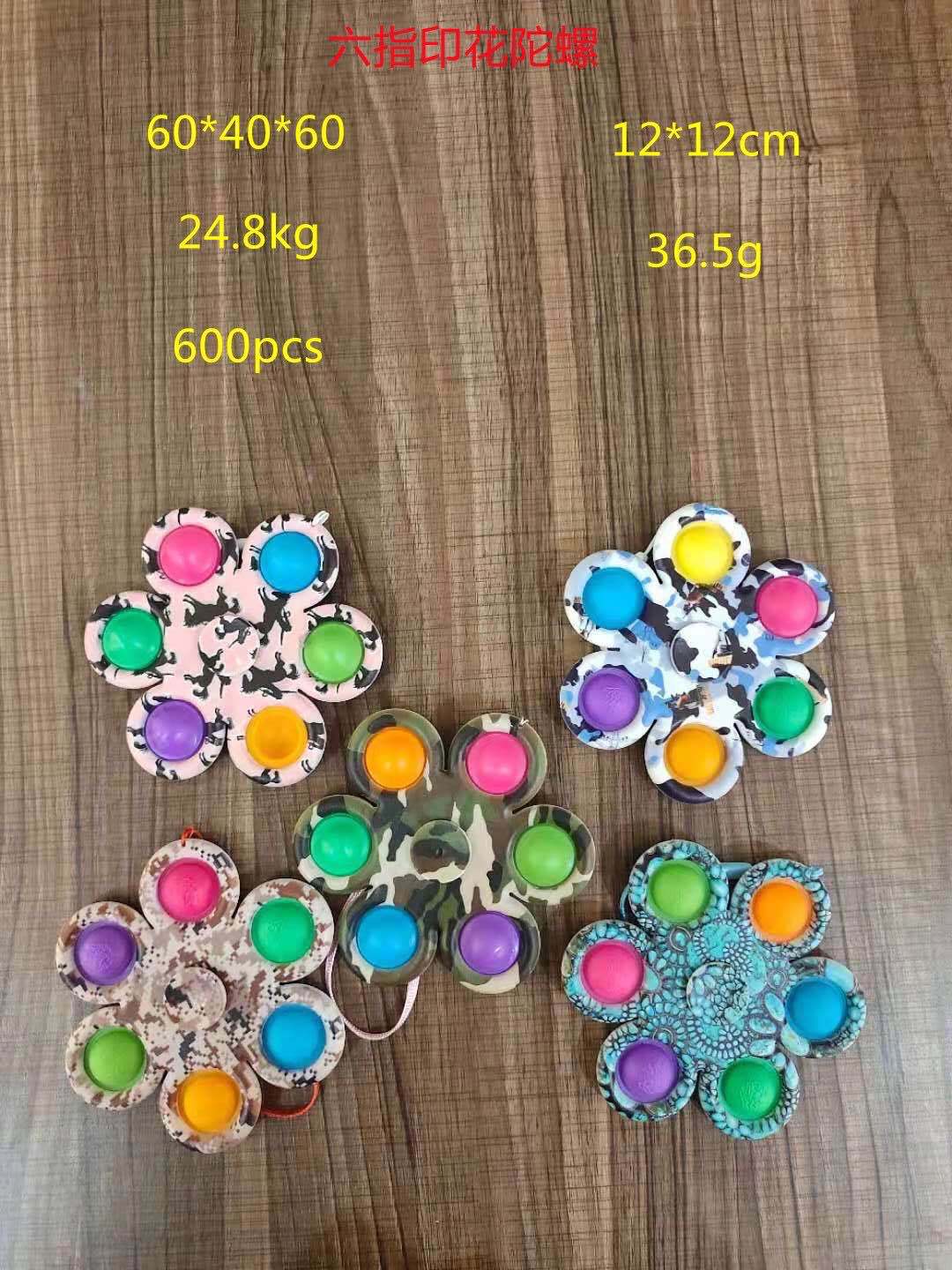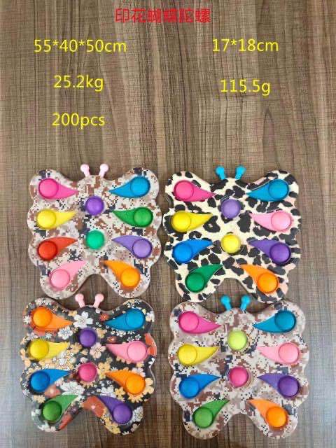 手指泡泡乐硅胶儿童解压玩具蝴蝶陀螺随身便携减压玩具迷彩印花