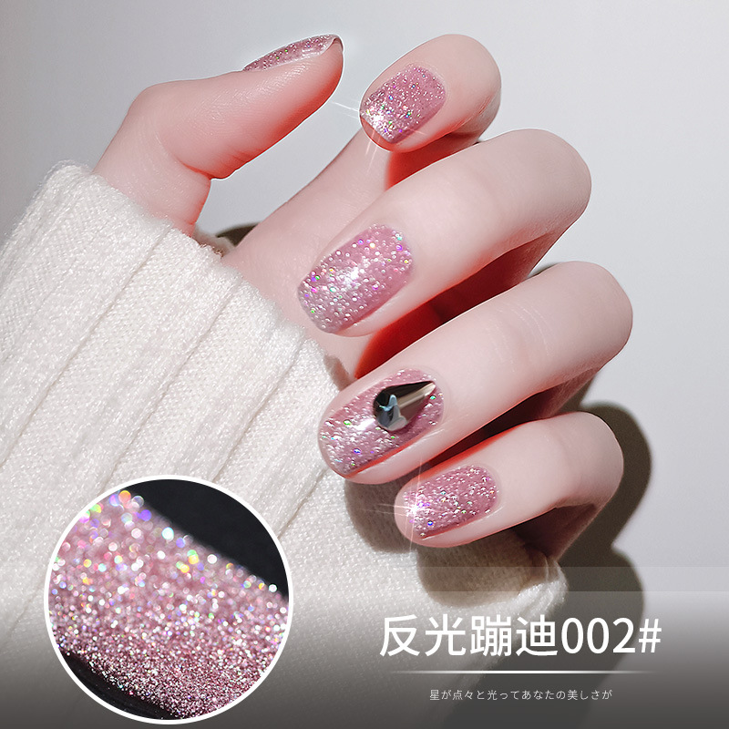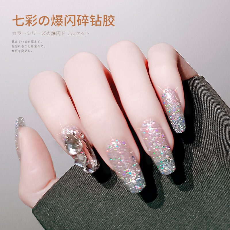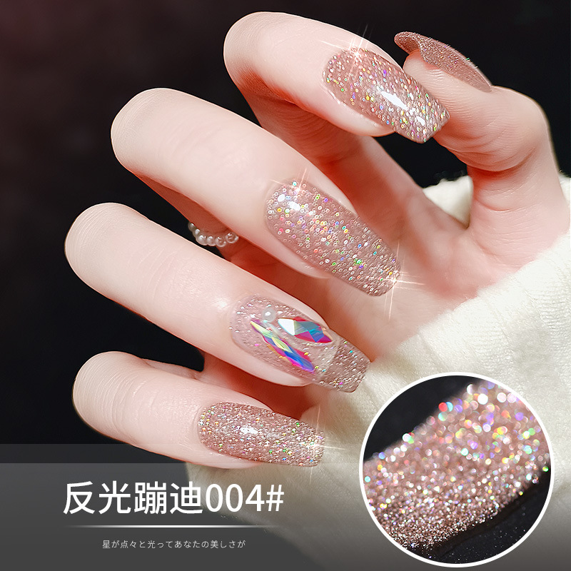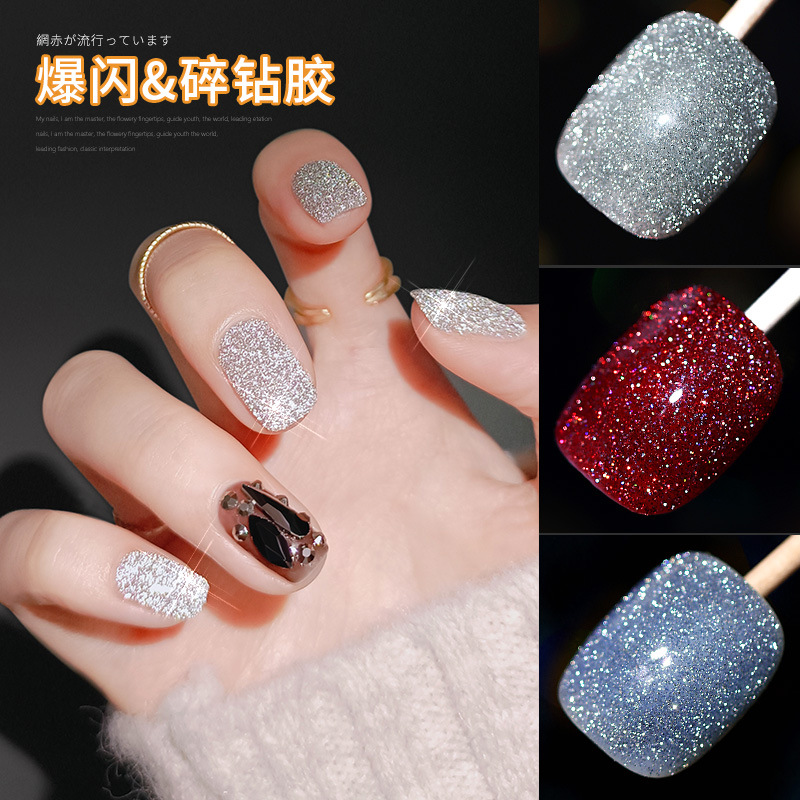 碎钻甲油胶2023年新款指甲光疗胶爆闪蹦迪反光水晶粉美甲