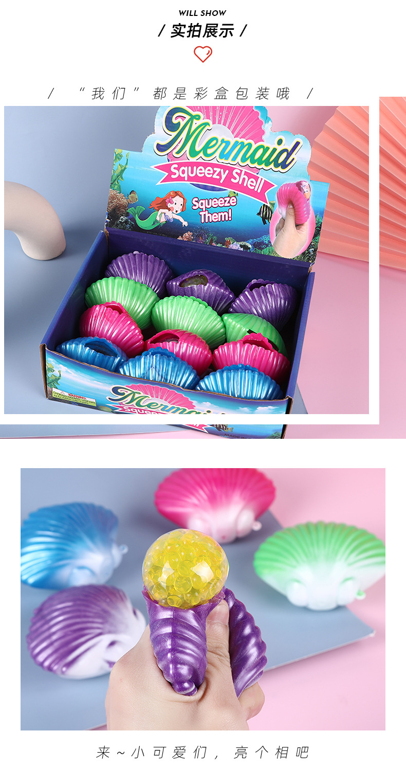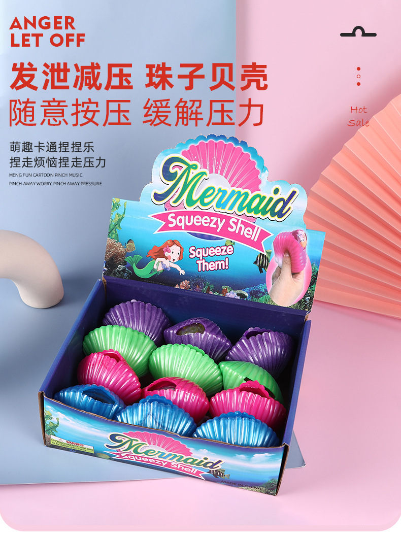 跨境爆款海洋卡通贝壳发泄球解压玩具挤压捏捏乐发泄减压玩具批发