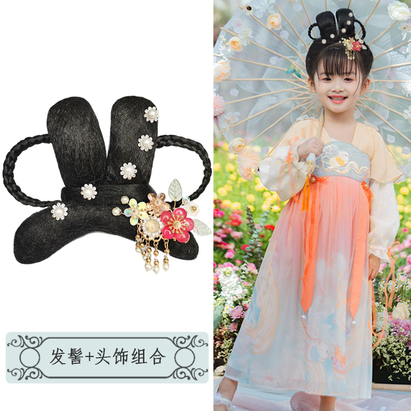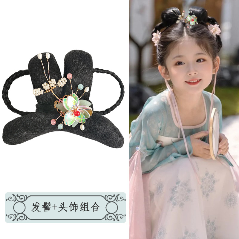 古装假发儿童古风汉服发型女童发髻造型发包盘发芊芊组合百变套装