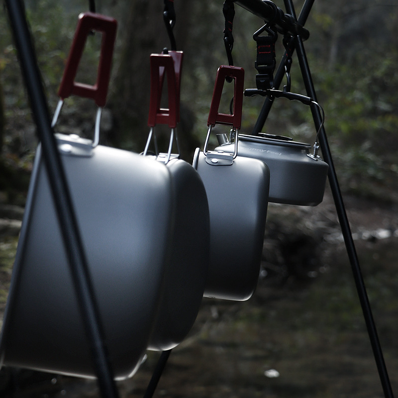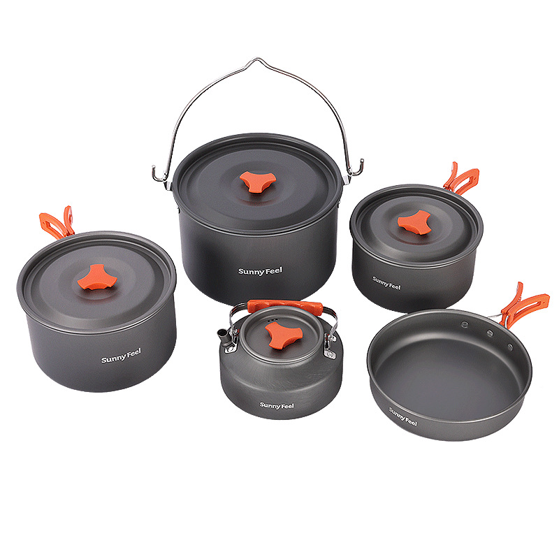 户外露营锅具营地4件套装锅盆野餐水壶煎锅野营炊具