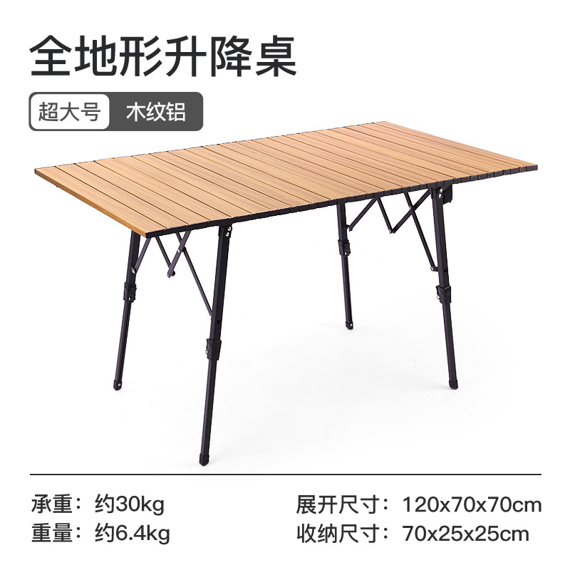 户外露营折叠桌全地形升降桌子野营铝合金蛋卷桌营地桌