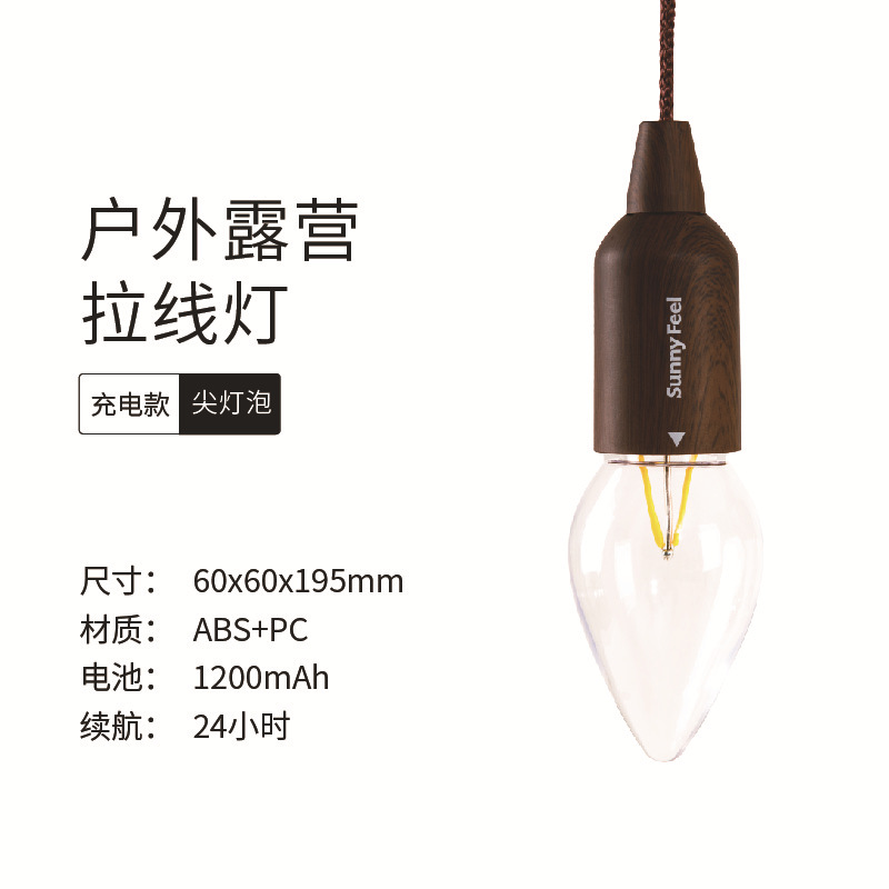 户外露营拉线灯野营照明灯室外氛围灯灯泡电池充电绳灯