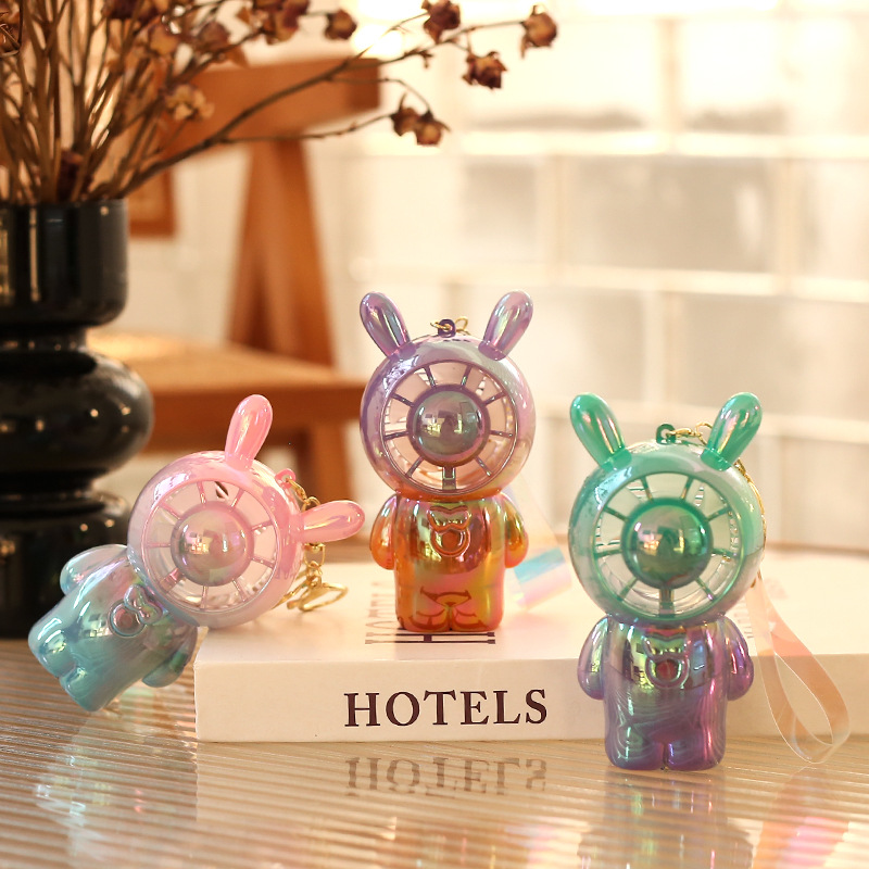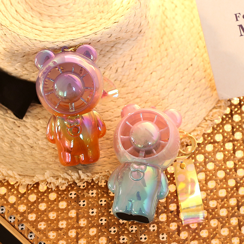 2023新款果冻渐变色炫彩风扇熊带钥匙扣USB 三档风力学生桌面摆件