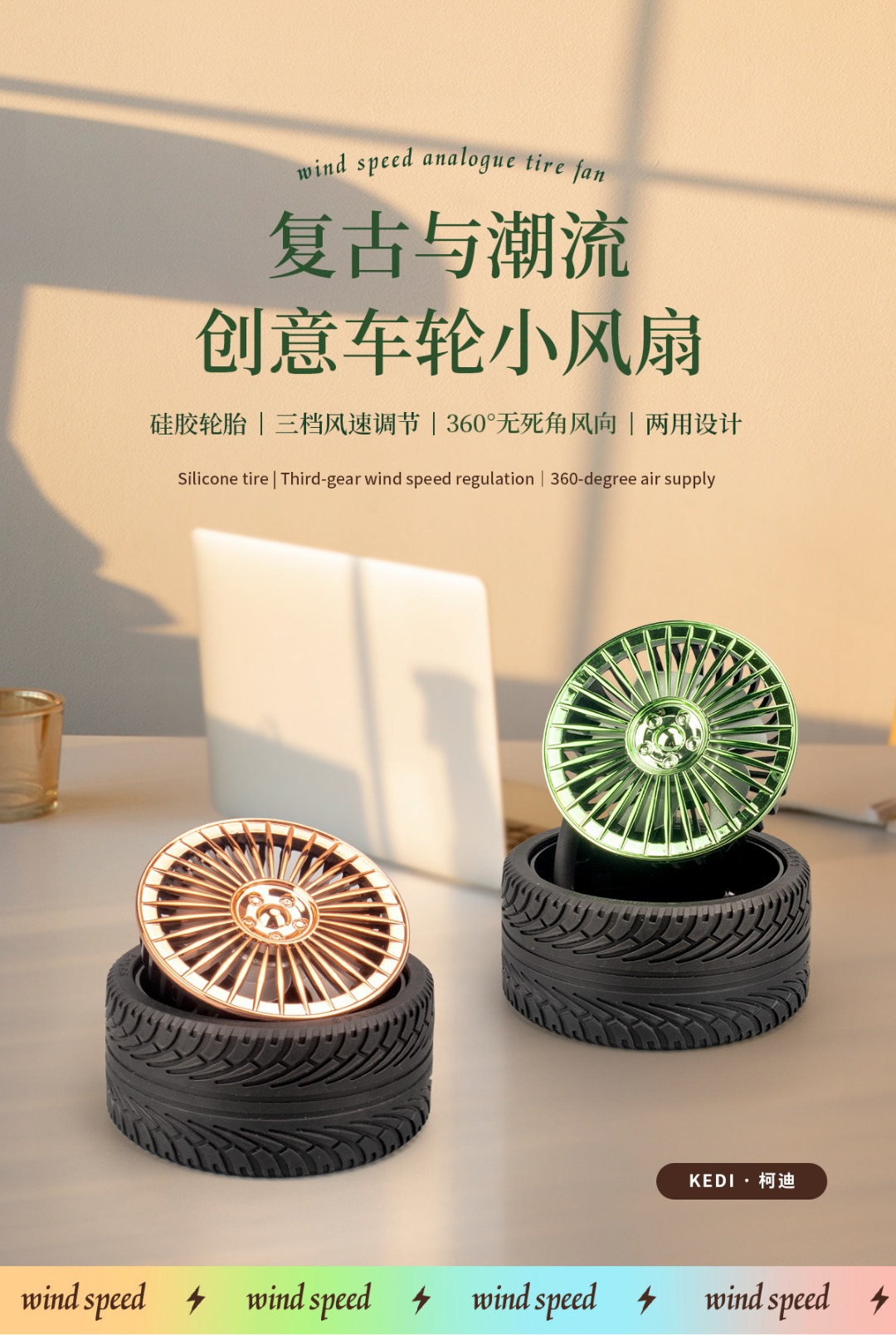 复古车轮充电风扇儿童学生便携式手持折叠充电USB电风扇迷你小型