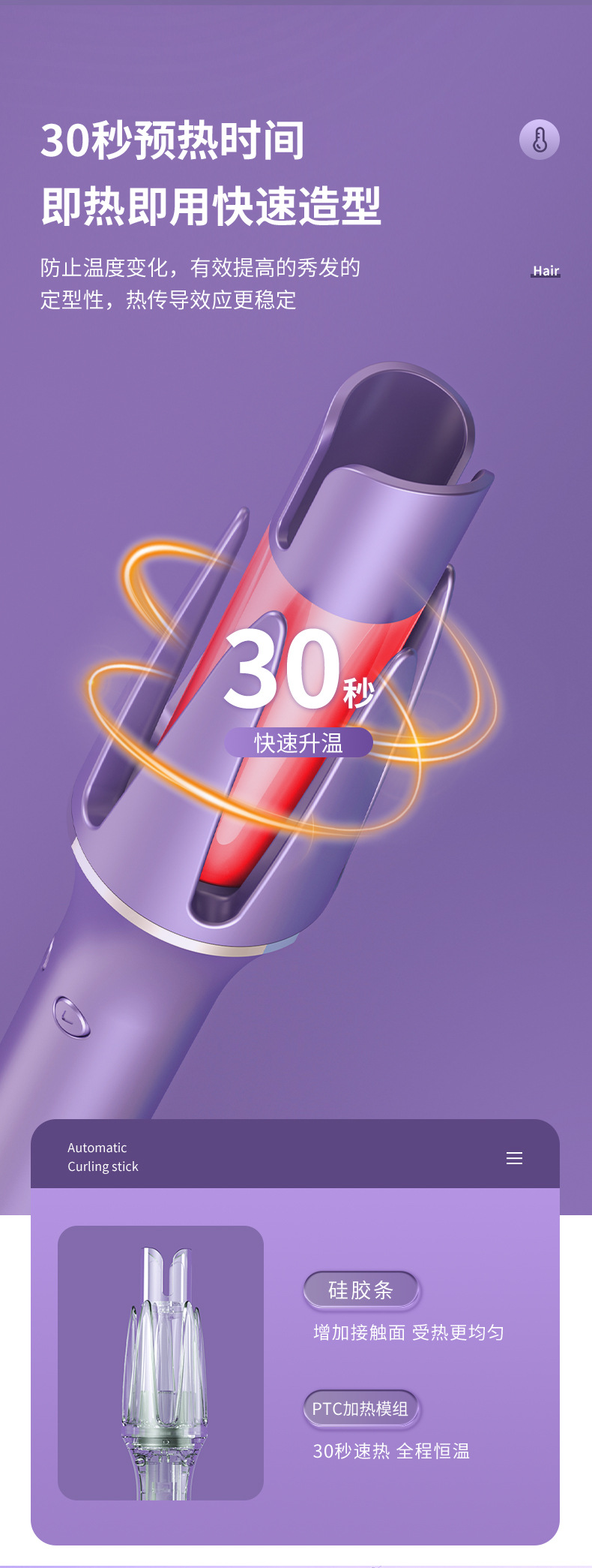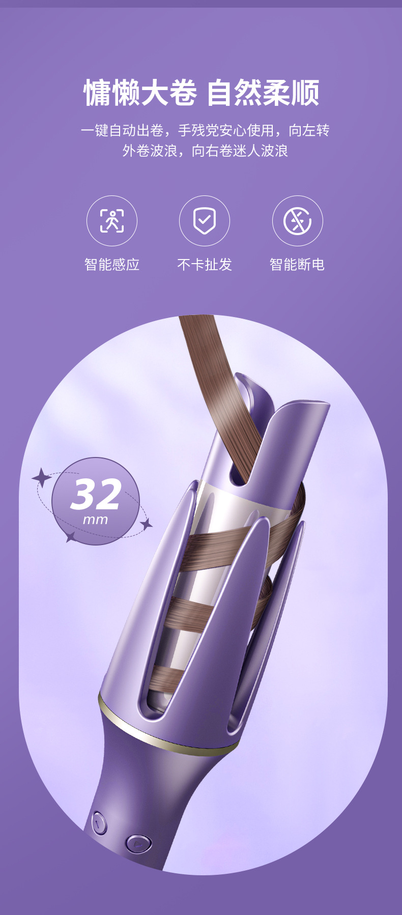 厂家直供全自动卷发棒大卷大波浪负离子不伤发卷发神器32mm电卷棒