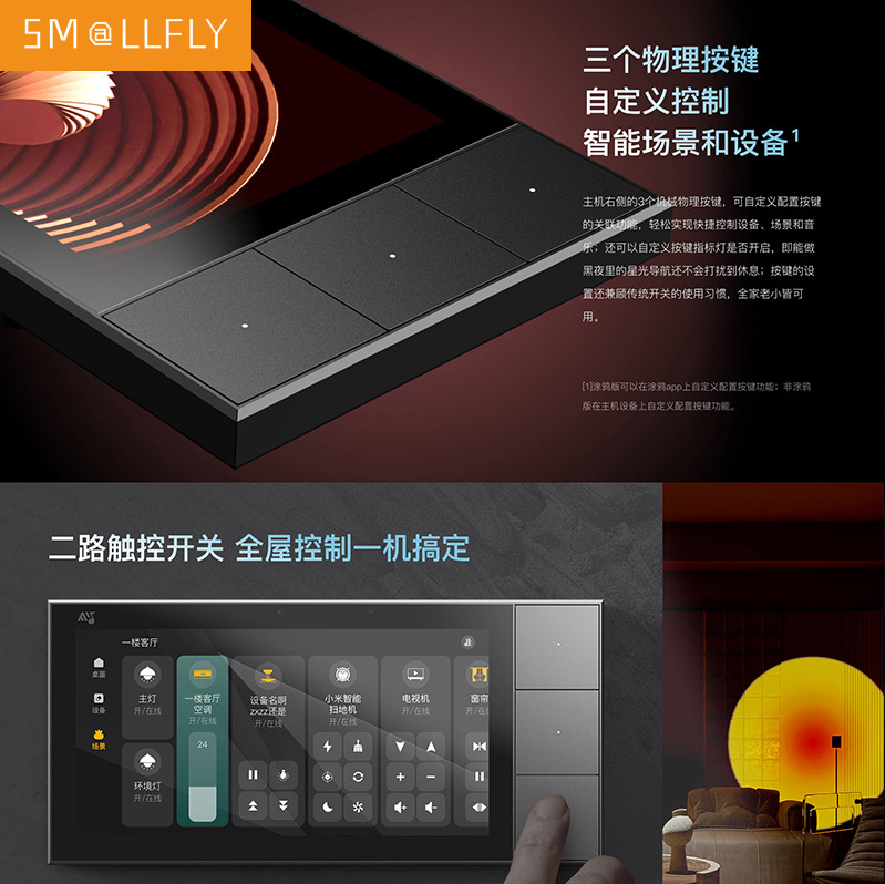 | 底盒尺寸 | 86mm*86mm*70mm | 正面 | 3个物理按键(可自定义配置控制设备/场景/音乐) |