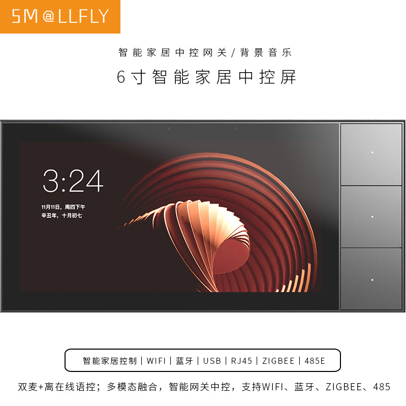 智能中控屏 86型6寸ZIGBEE无线智能家居网关涂鸦背景音乐主机
