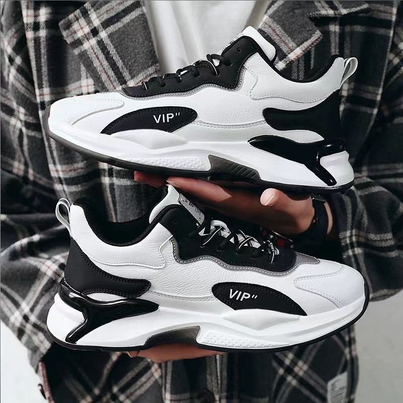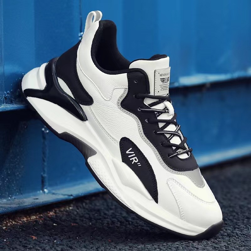 男鞋2022年秋季新款皮面运动休闲跑步潮鞋男士潮流百搭男士阿甘鞋
