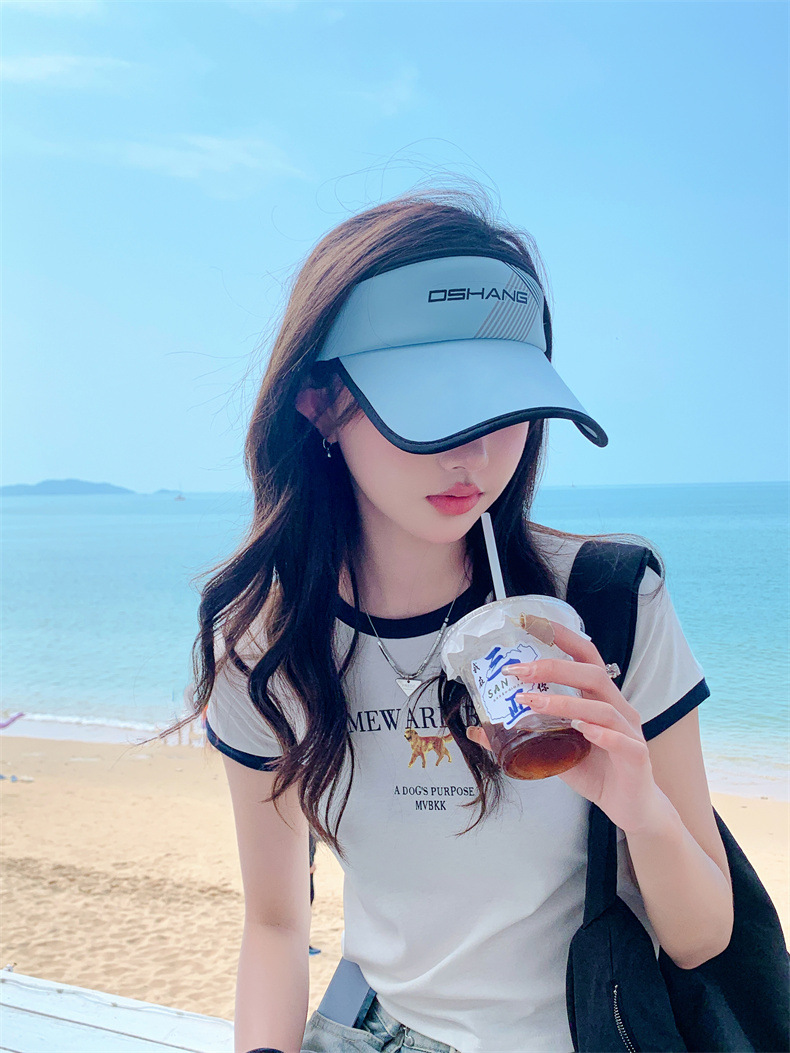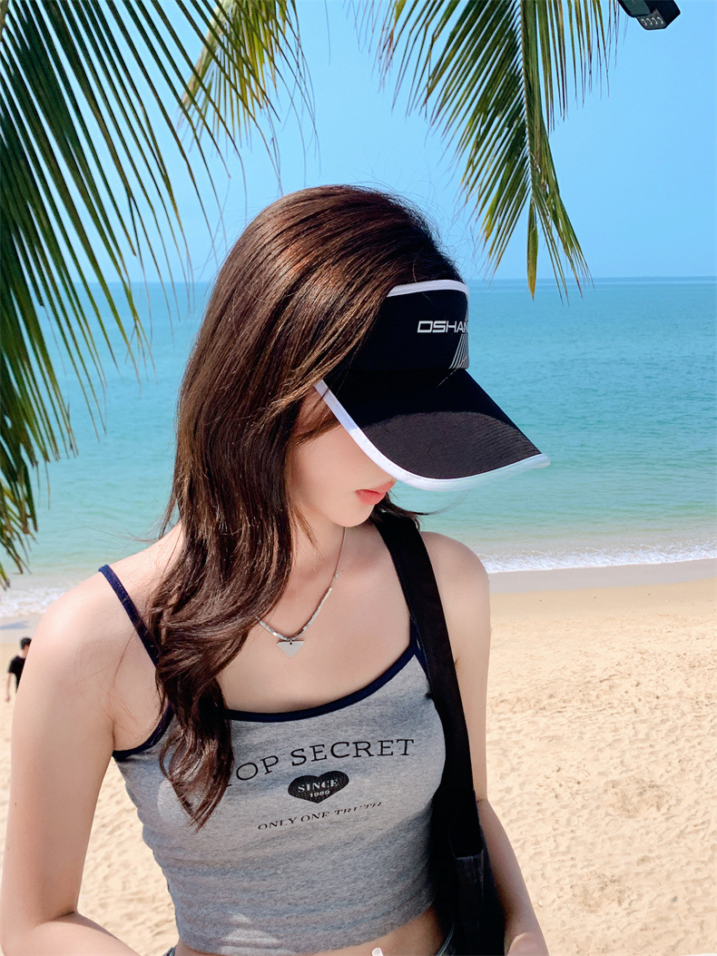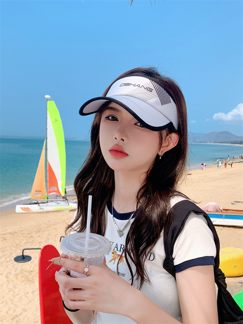 时尚网红字母空顶帽子女士夏季大沿防晒鸭舌帽户外骑车休闲遮阳帽