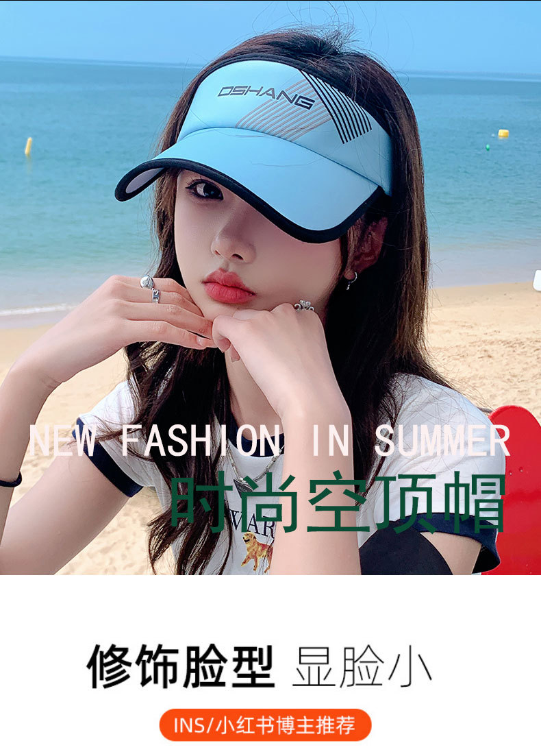 时尚空顶帽子夏季女士大沿防晒鸭舌遮阳帽户外休闲骑车沙滩棒球帽