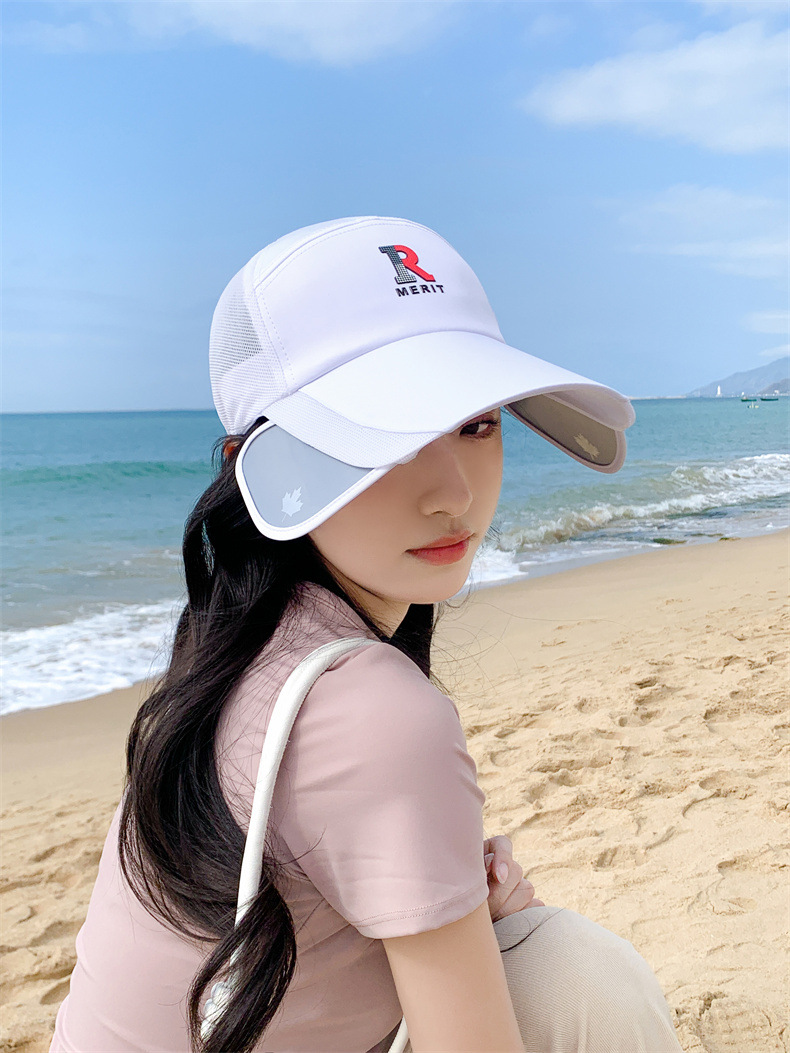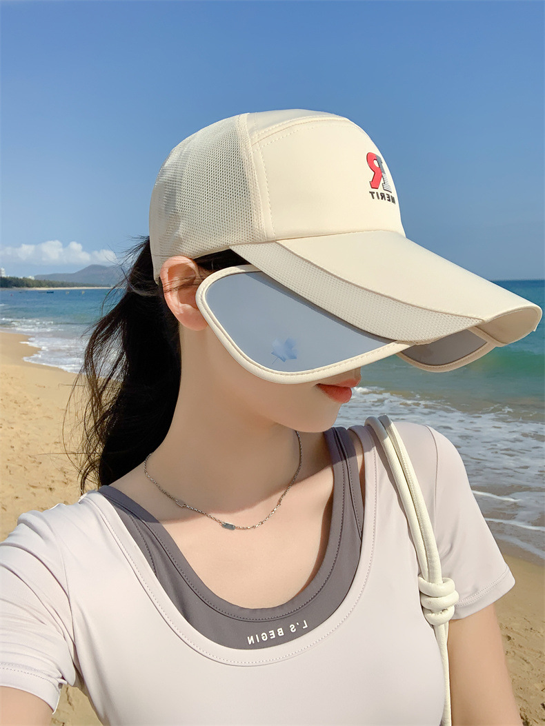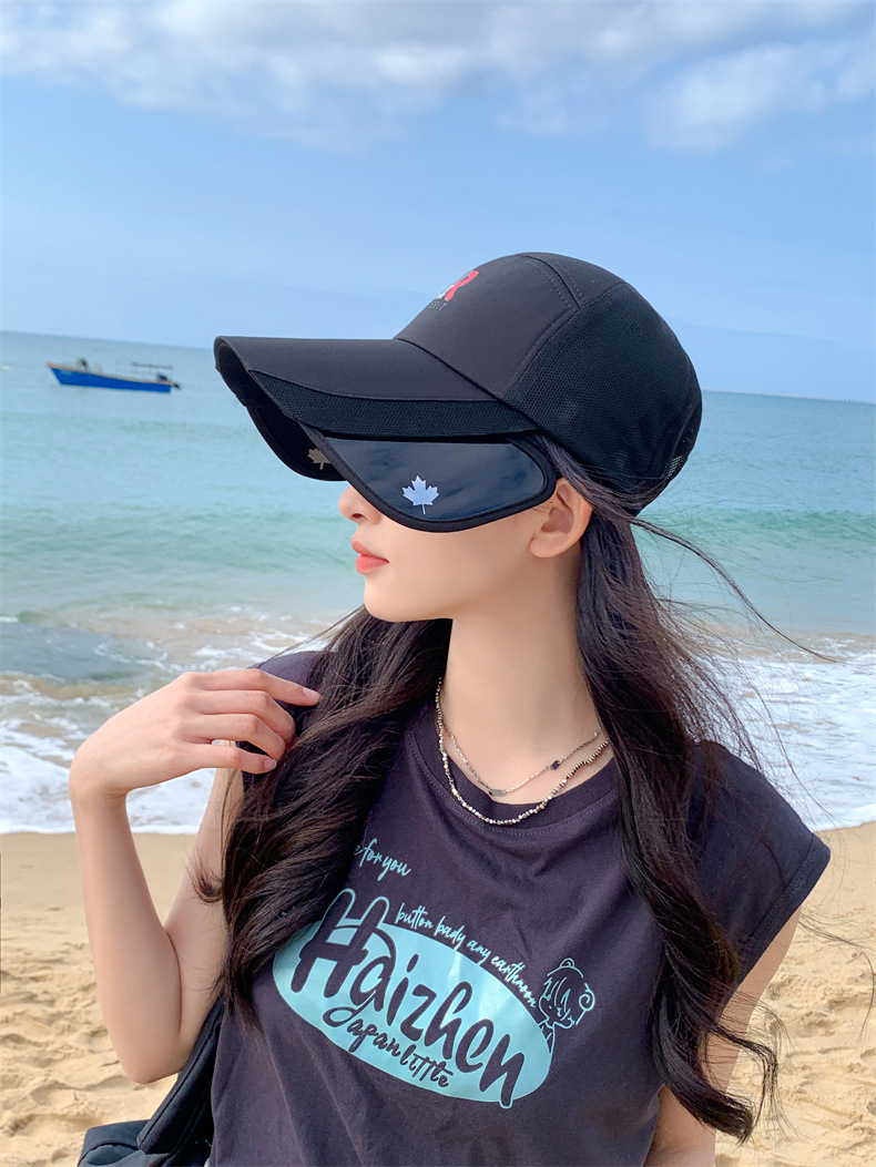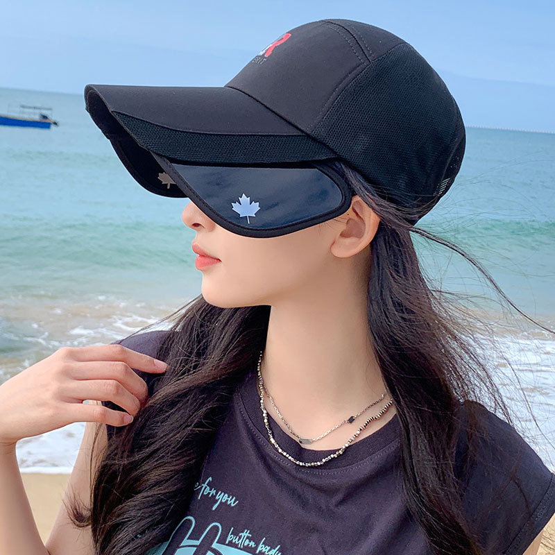 网眼鸭舌帽子女士夏季遮脸拉板防晒棒球帽户外遮阳防紫外线骑车帽