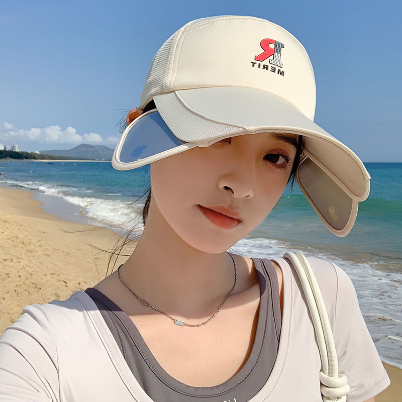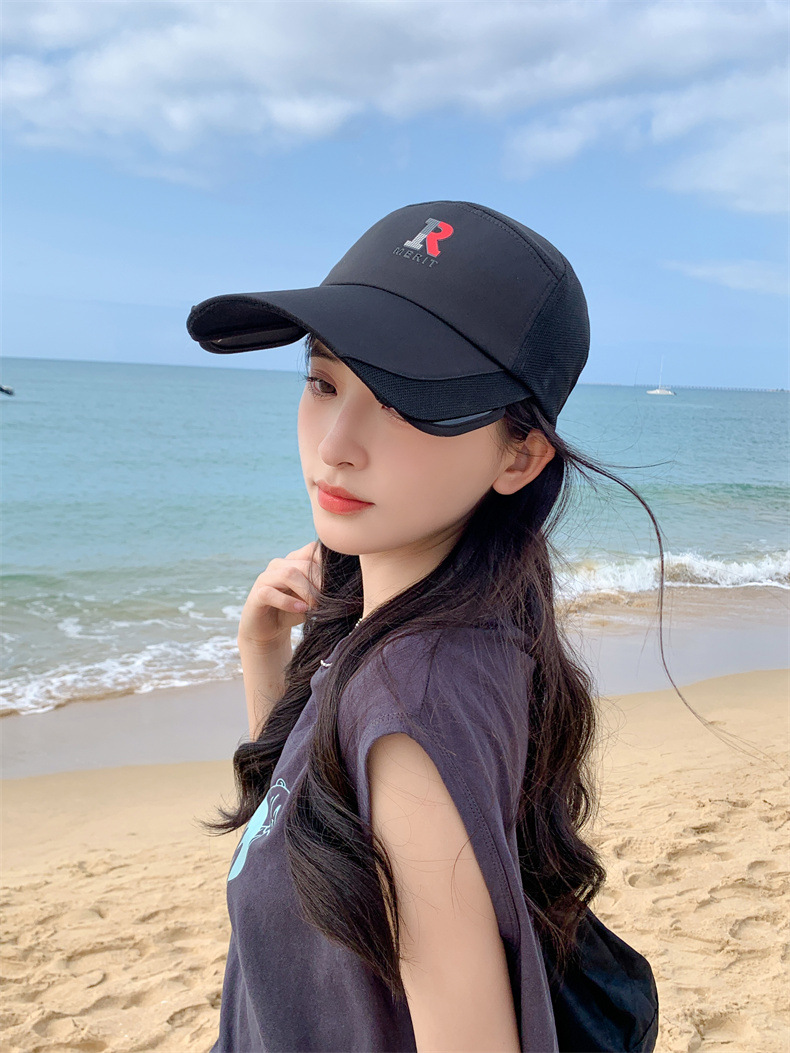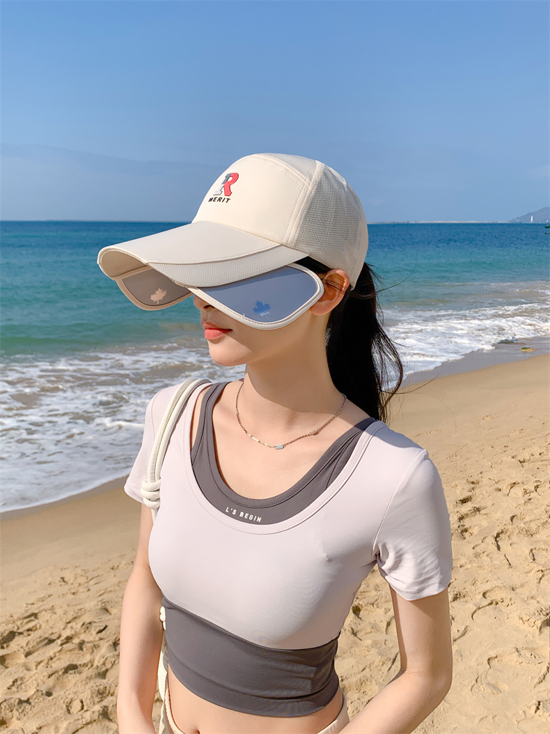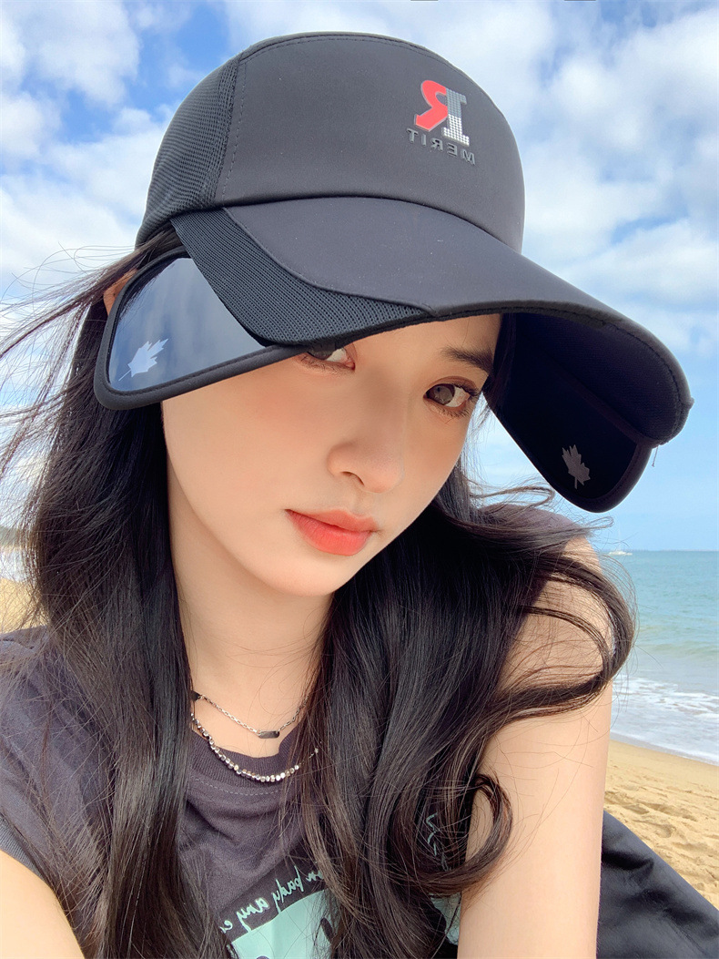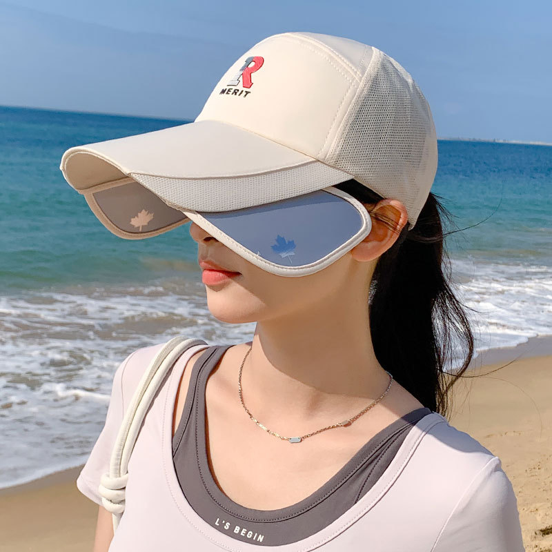 网眼鸭舌帽子女士夏季遮脸拉板防晒棒球帽户外遮阳防紫外线骑车帽