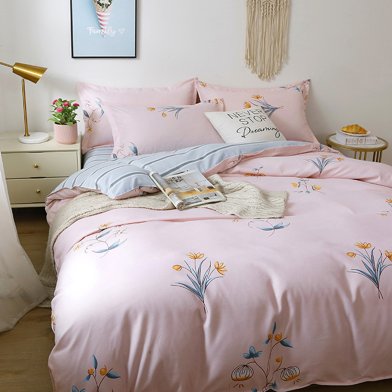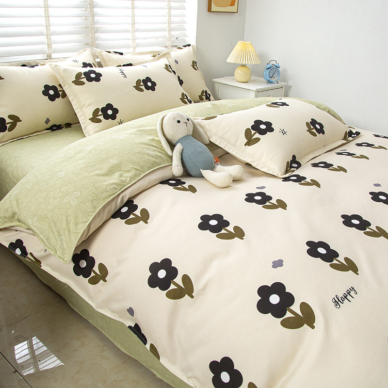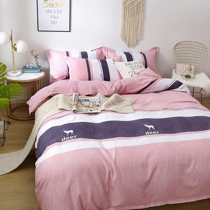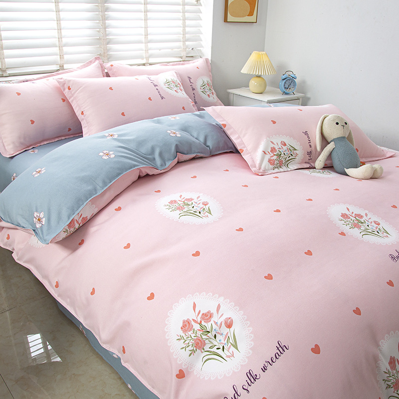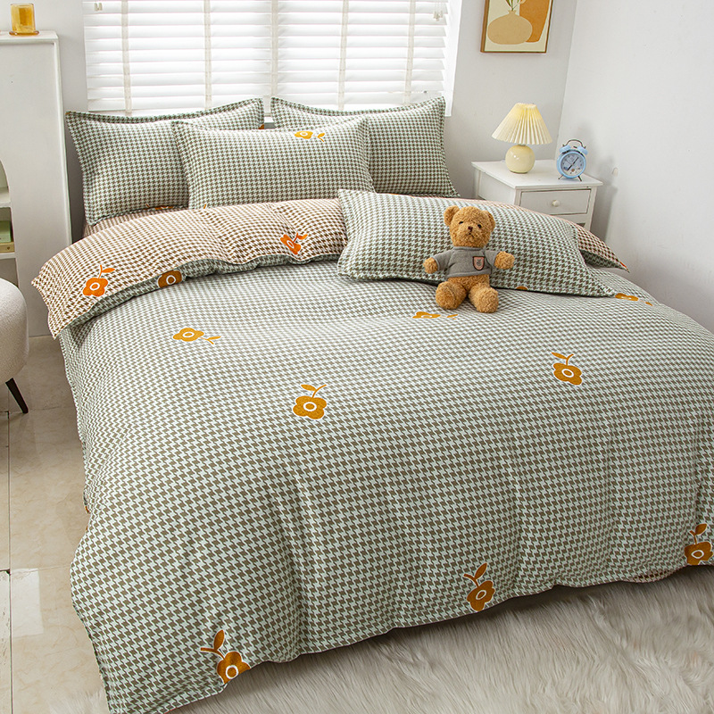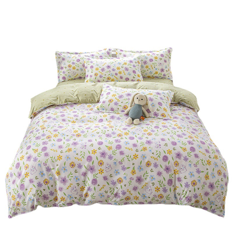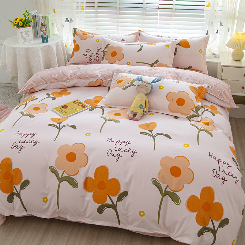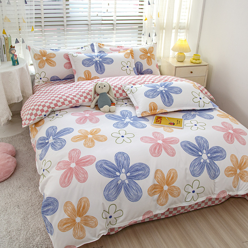 新款纯棉磨毛四件套小清新加厚床单被套学生水洗棉三件套床上用品