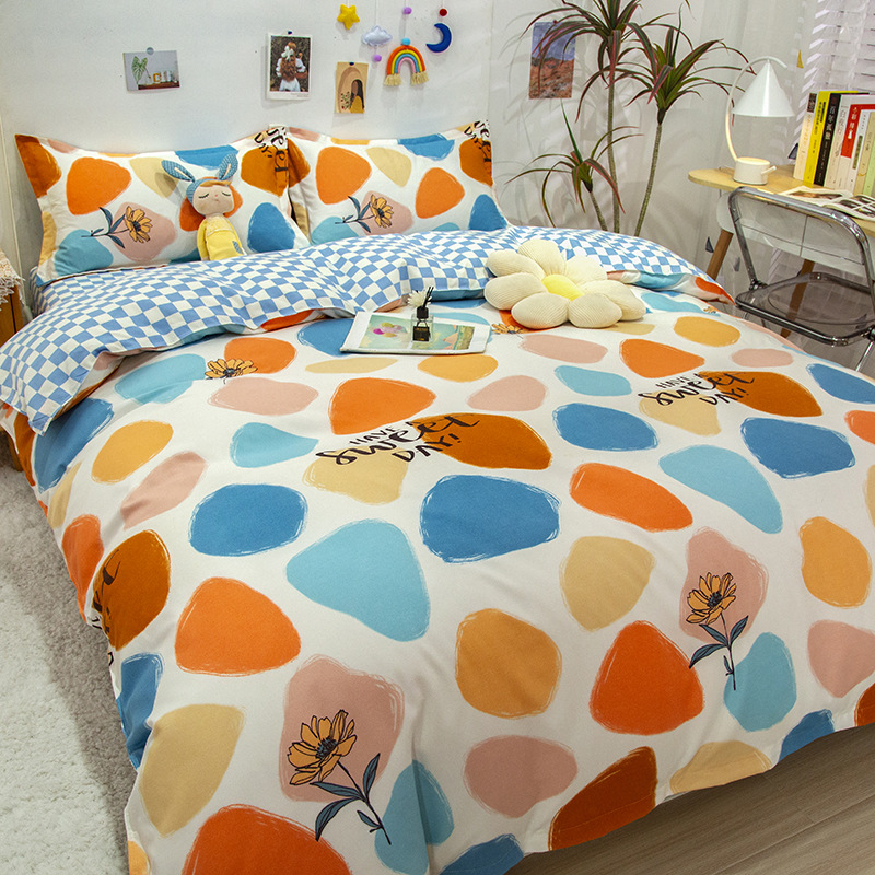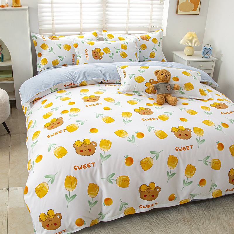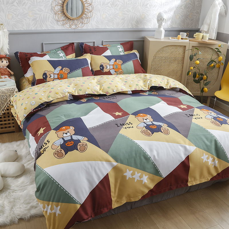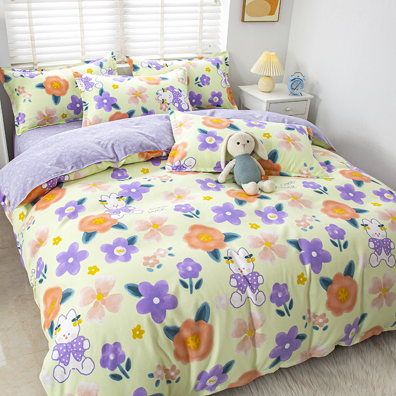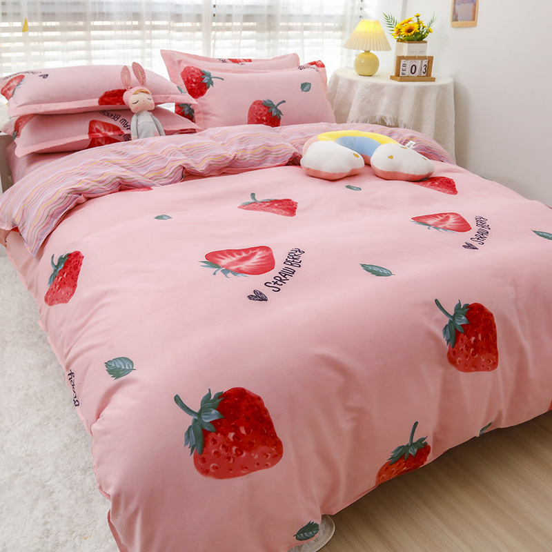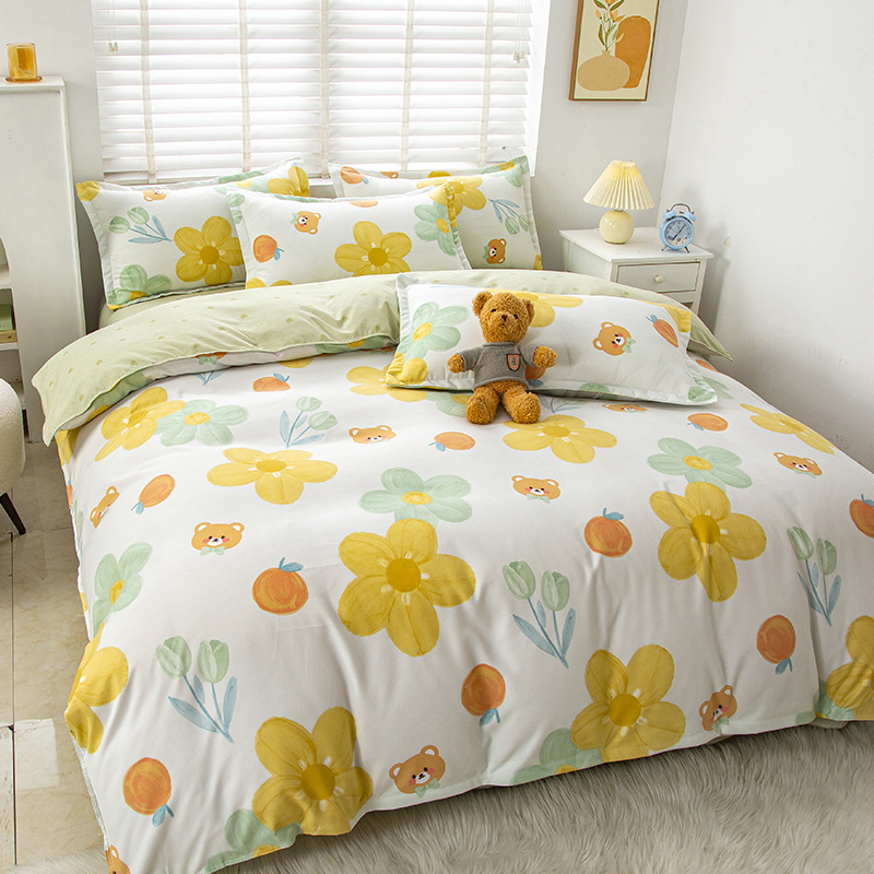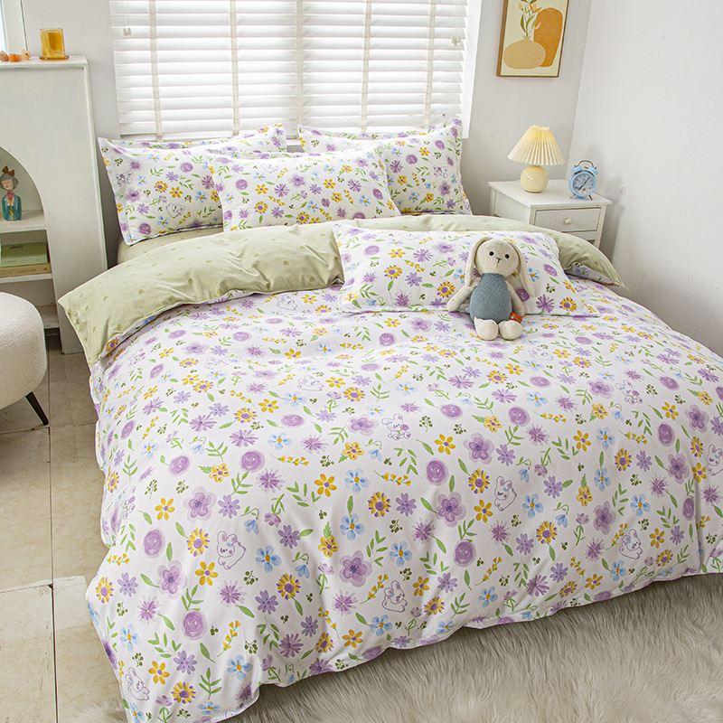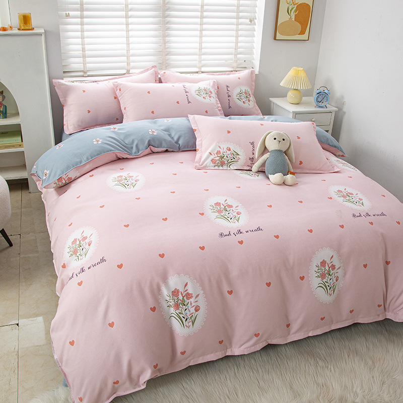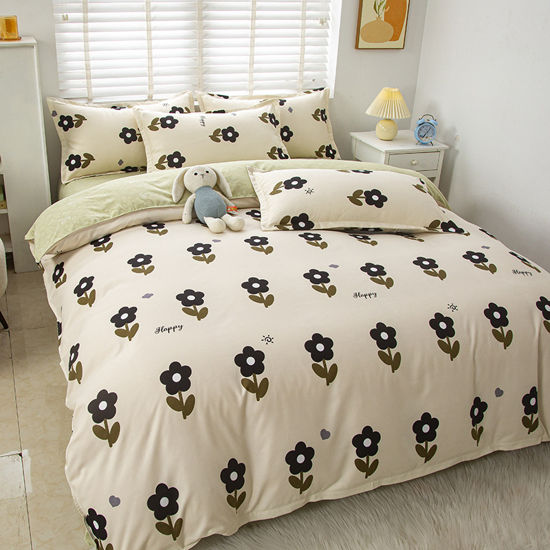 新款纯棉磨毛四件套小清新加厚床单被套学生水洗棉三件套床上用品