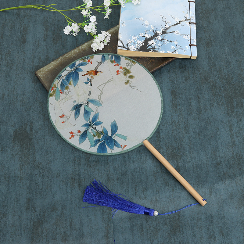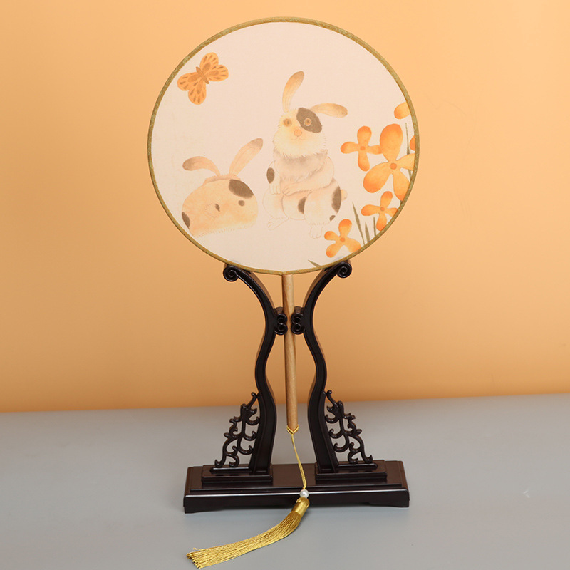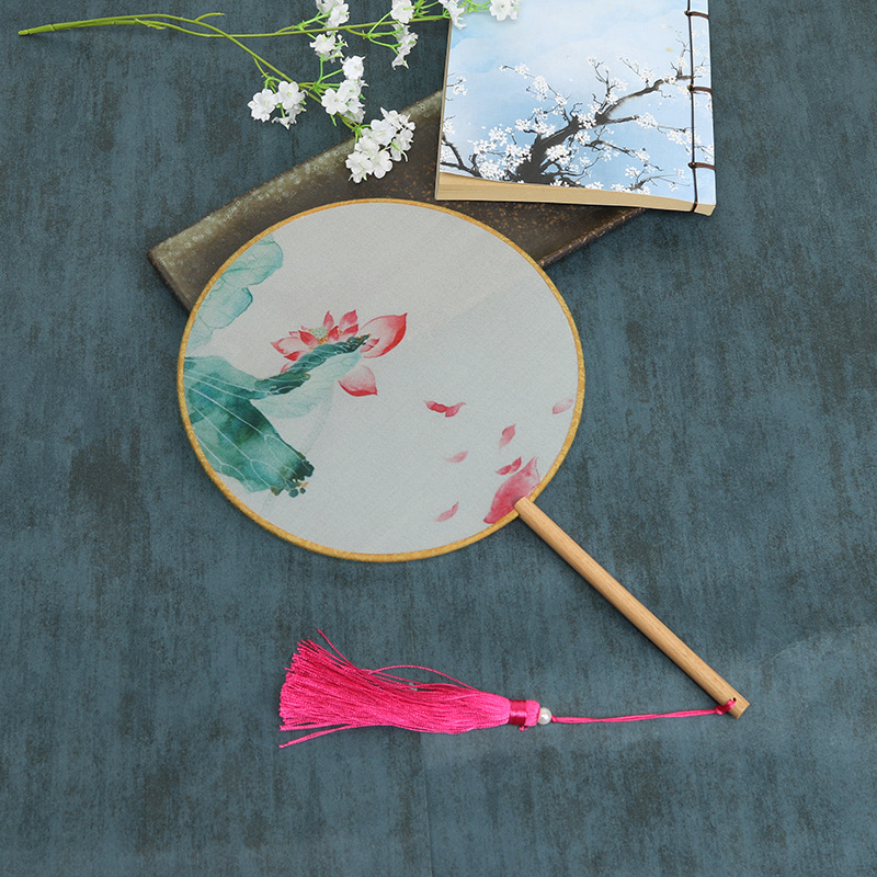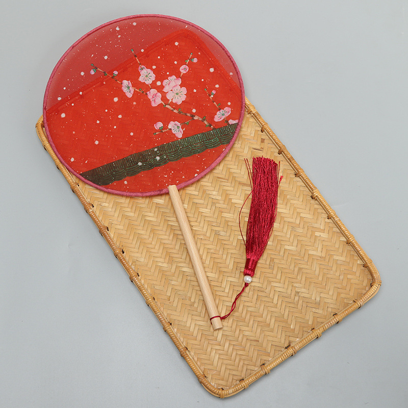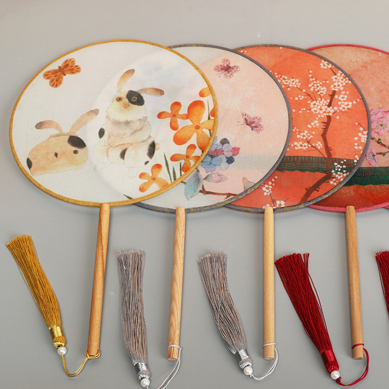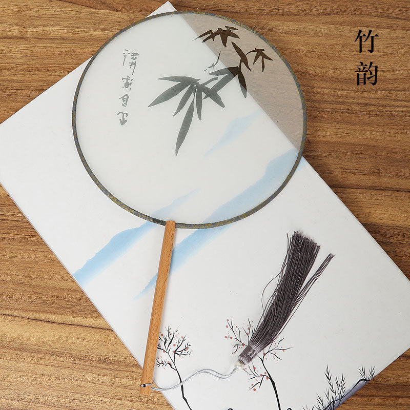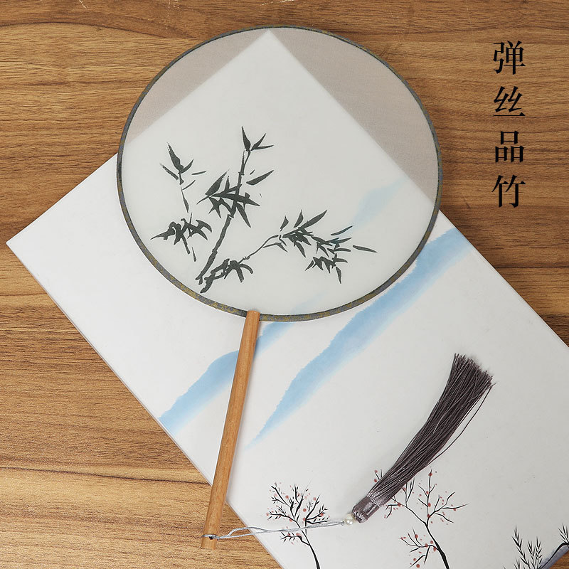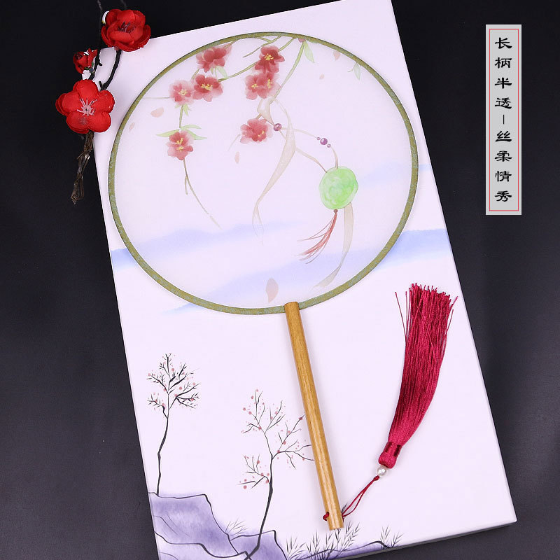 古风半透明团扇女式古典汉服舞蹈宫扇中长柄竹扇空白diy扇子批发
