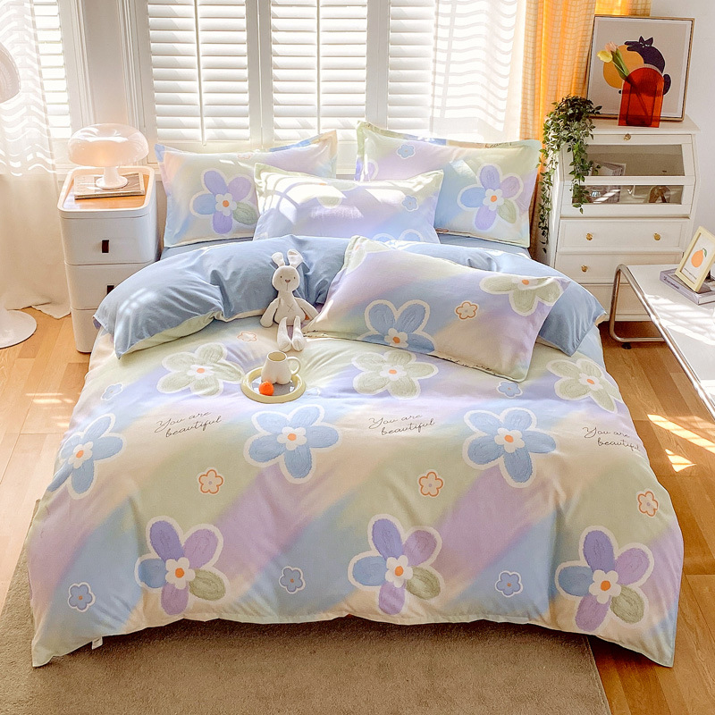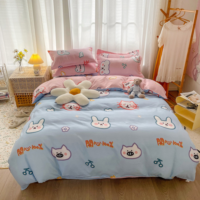 厂家直供简约纯棉磨毛四件套加厚床单被套宿舍三件套床上用品批发