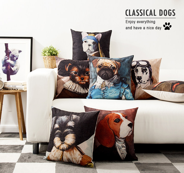 动物肖像静物狗狗办公靠枕沙发垫枕套文艺范个性汽车原创棉麻抱枕