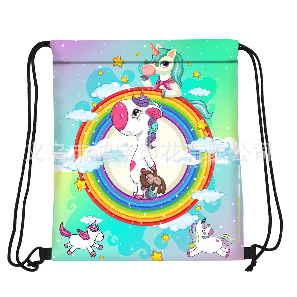 新款束口双肩包防水卡通独角兽可折叠束口袋可爱收纳背包袋批发