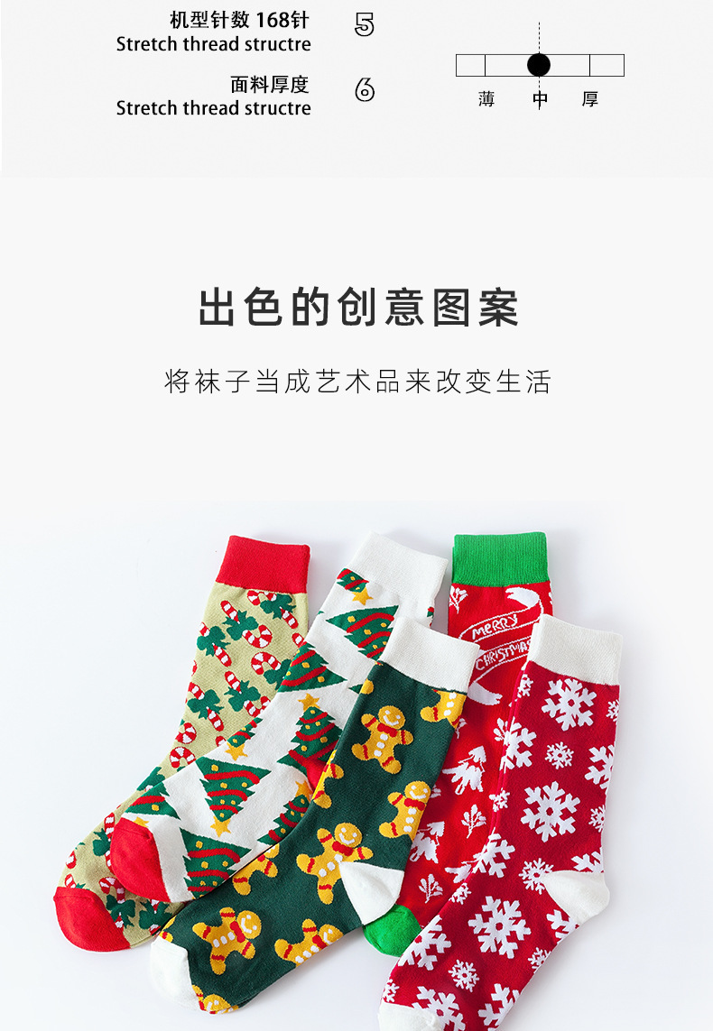 中筒袜女圣诞节雪花外贸潮袜秋冬现货批发亚马逊跨境女士袜子跨境