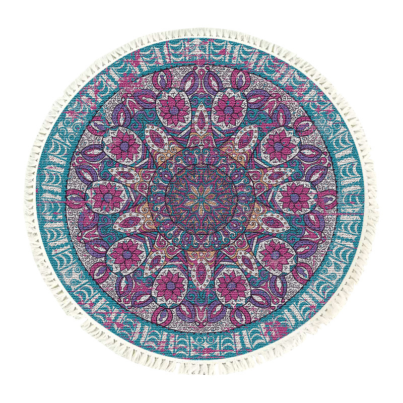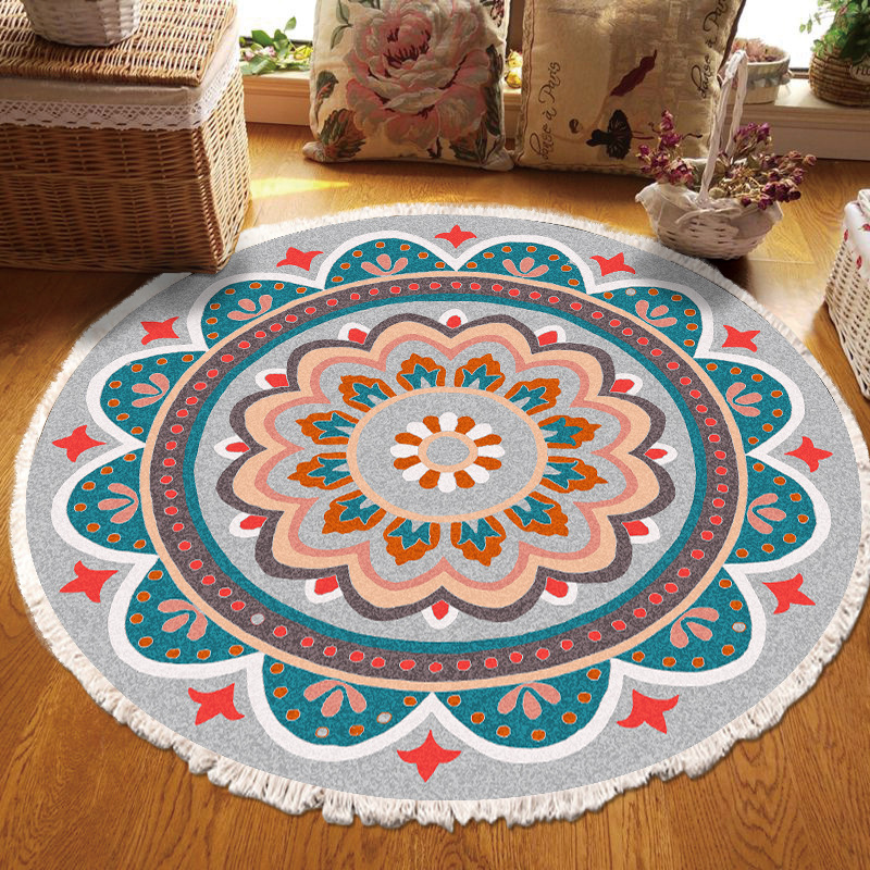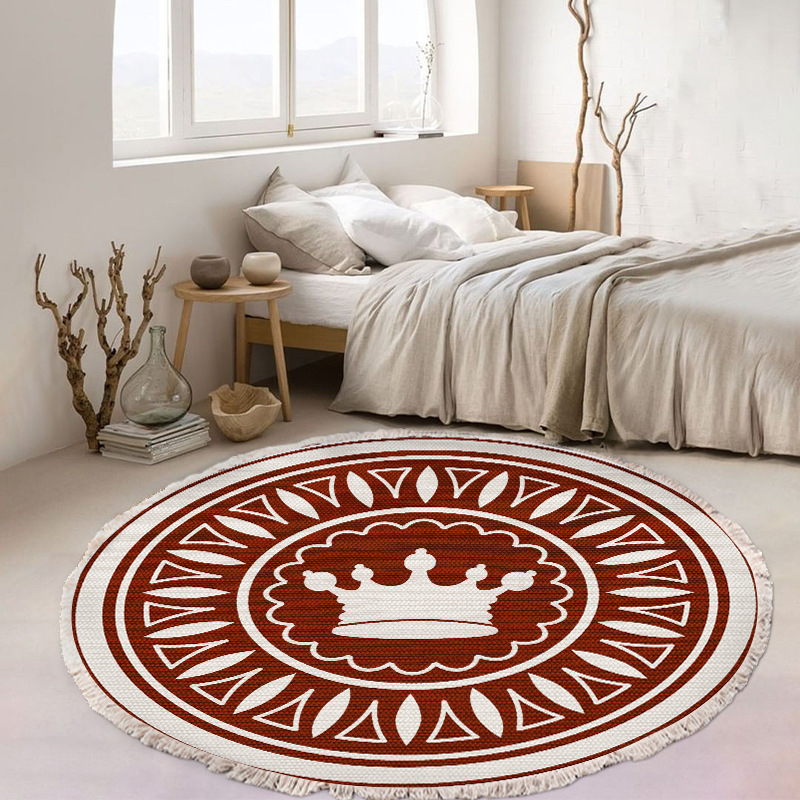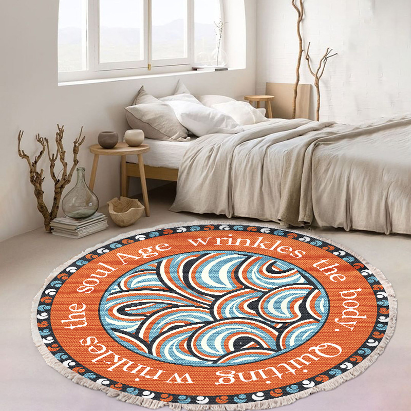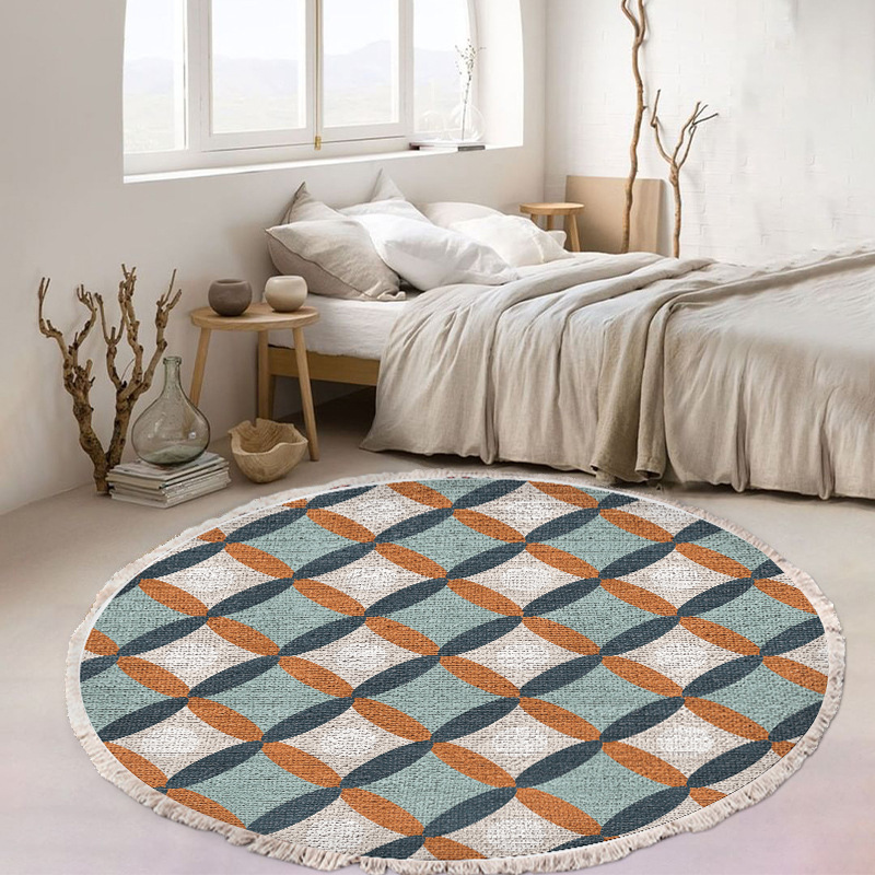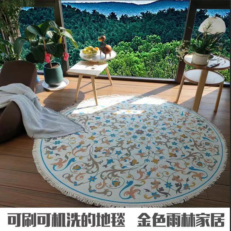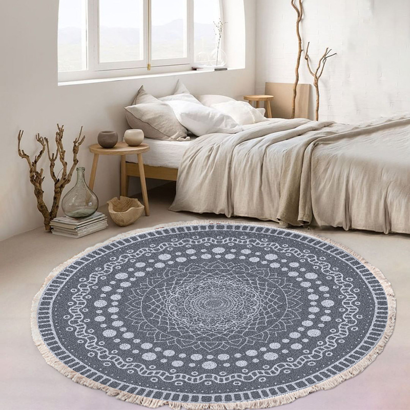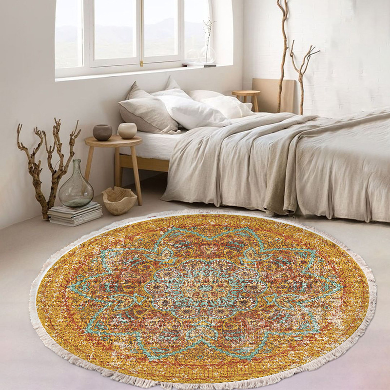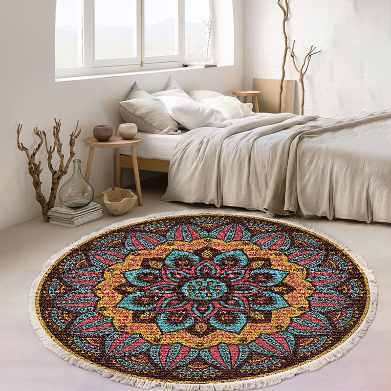 跨境民族风流苏地毯家用茶几客厅印花地垫圆形棉麻卧室床边毯防滑
