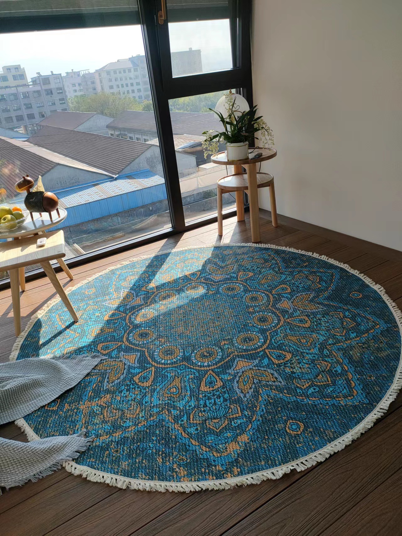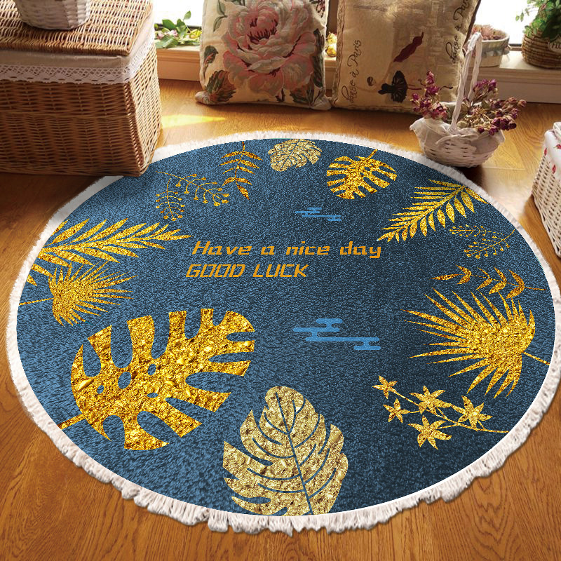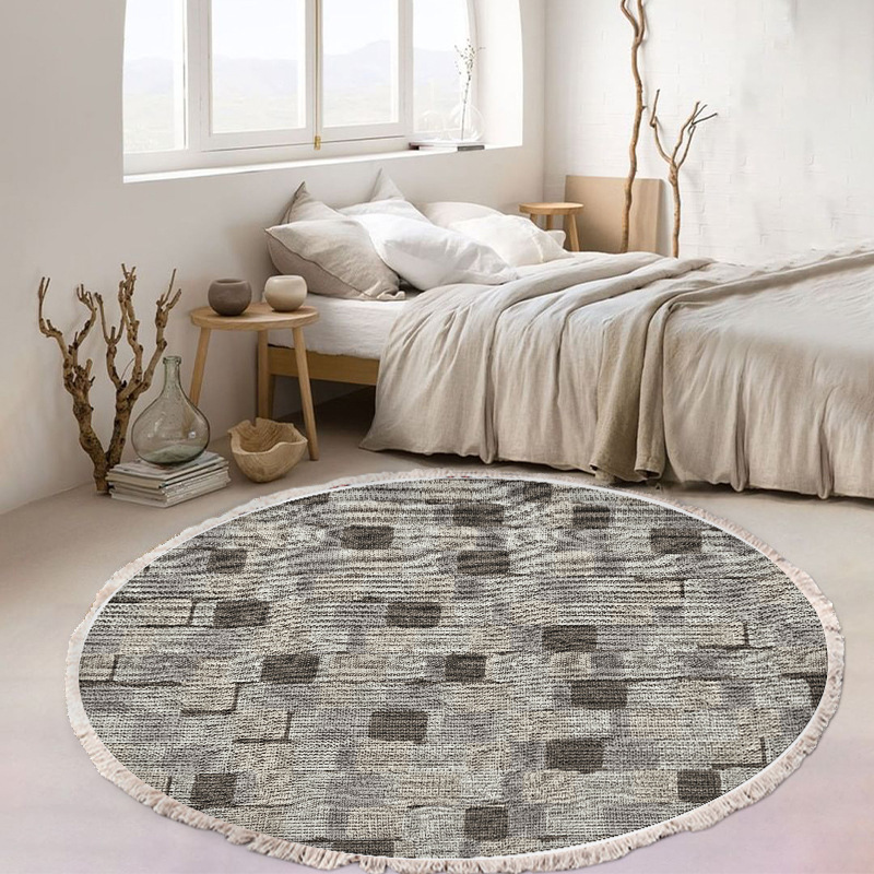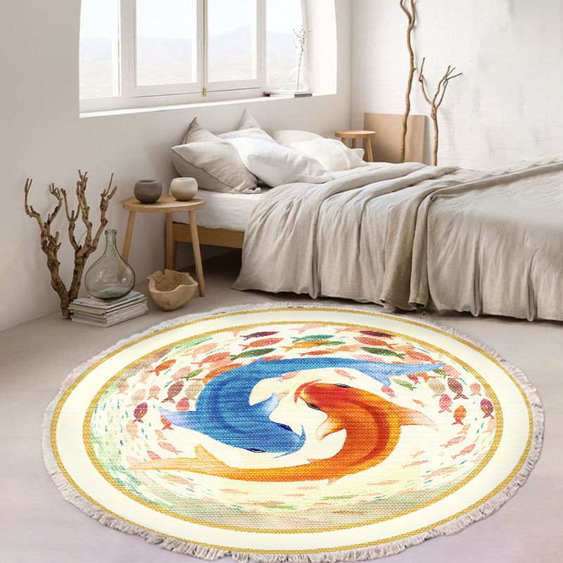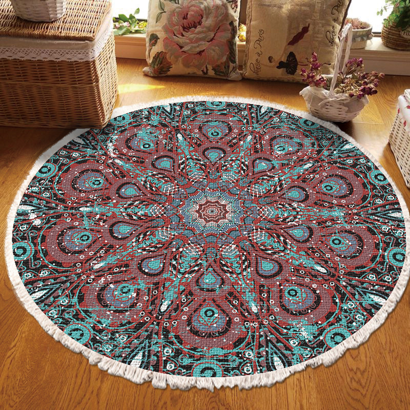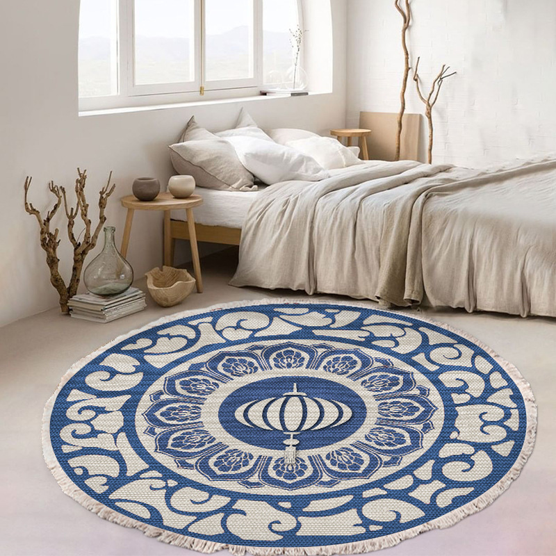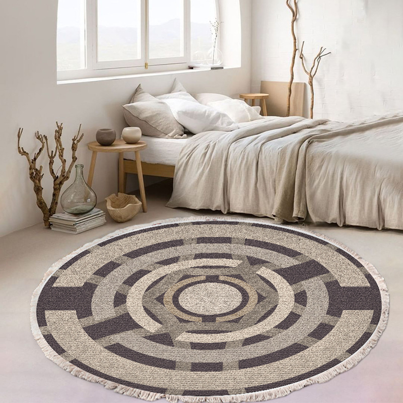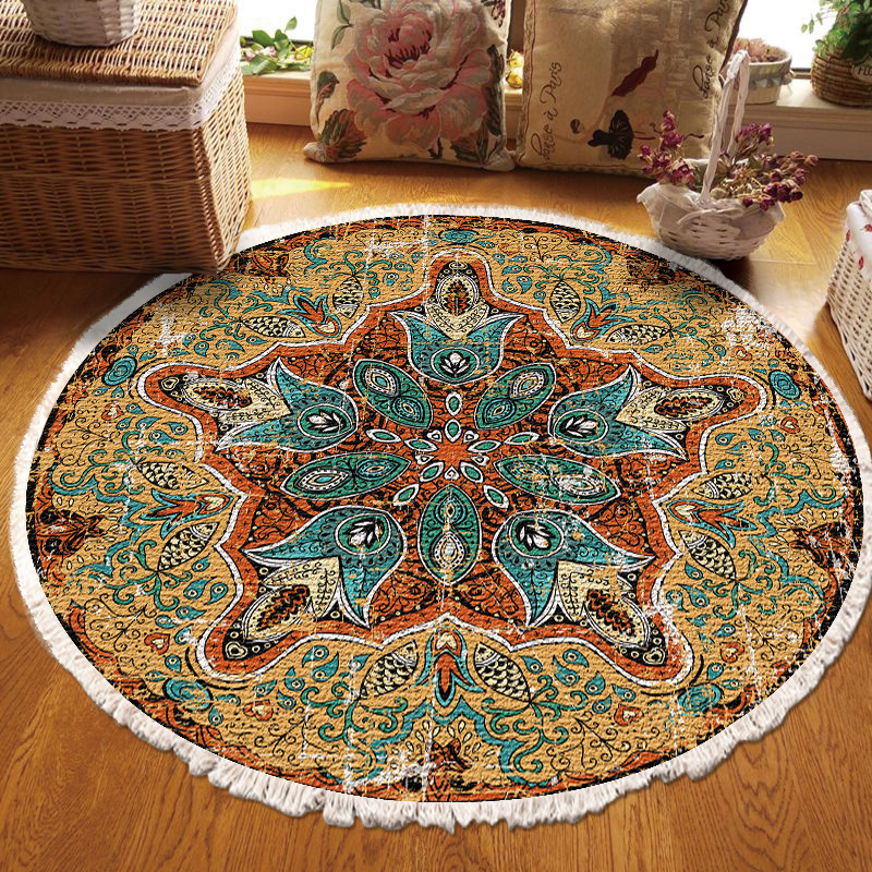 跨境民族风流苏地毯家用茶几客厅印花地垫圆形棉麻卧室床边毯防滑