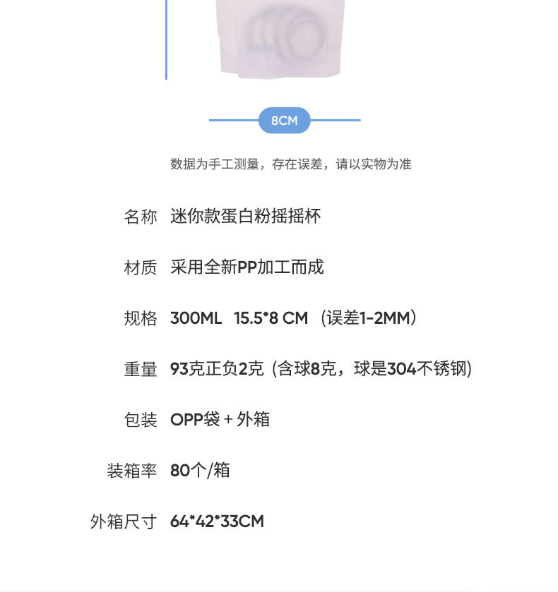 300ML小号蛋白粉摇摇杯奶昔杯代餐运动健身水杯带搅拌球迷你摇杯