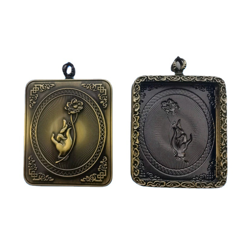 祥云款微型唐卡嘎乌盒子立体浮雕仿古作旧佛手莲花吊坠六字八宝盒