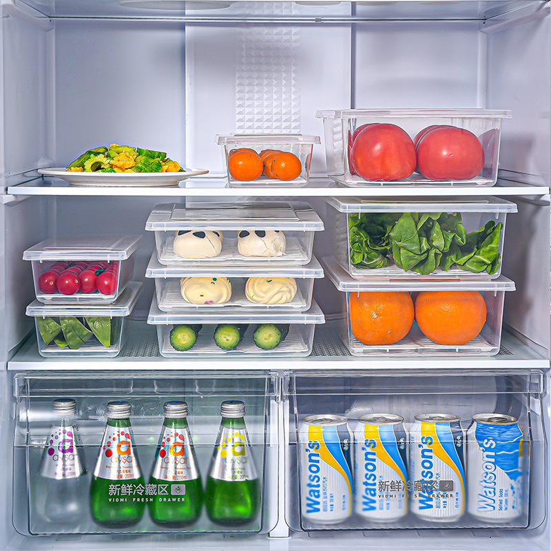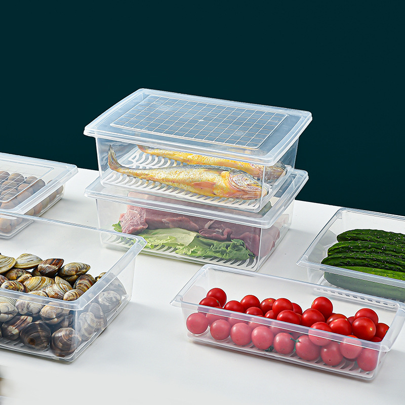 厨房沥水保鲜盒塑料鱼盒海鲜蔬菜长方形冰箱冷藏防串味储藏盒厂家